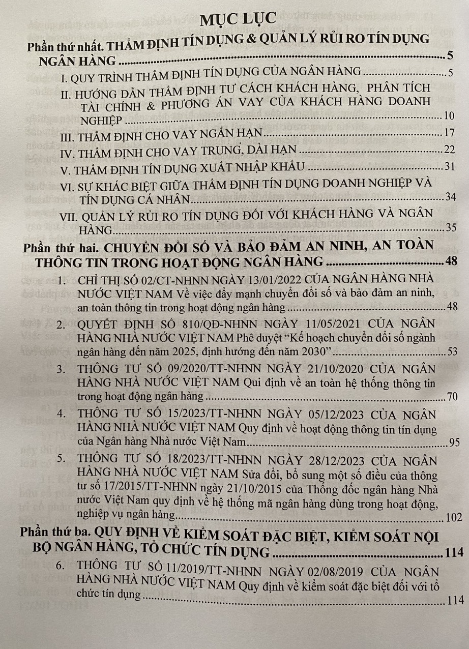Ngày 18/01/2024 Quốc hội đã thông qua Luật Các tổ chức tín dụng số 32/2024/QH15  gồm XV Chương với 210 Điều. Luật Các tổ chức tín dụng 2024 có hiệu lực từ 01/7/2024. Bên cạnh hoàn thiện các quy định hạn chế tình trạng thao túng hoạt động của tổ chức tín dụng, Luật các Tổ chức tín dụng 2024 vừa được Quốc hội thông qua có nhiều điểm mới như: Hoàn thiện các quy định về hoạt động và bảo đảm an toàn trong hoạt động của tổ chức tín dụng và quỹ tín dụng nhân dân; Quy định về dịch vụ ngân hàng qua phương tiện điện tử; Quy định thúc đẩy quá trình cơ cấu tại tổ chức tín dụng và xử lý tổ chức tín dụng yếu kém; Luật hóa quy định về xử lý nợ xấu, tài sản đảm bảo của khoản nợ xấu… Nhằm giúp bạn đọc hiểu rõ hơn các quy định pháp luật hiện hành trong lĩnh vực tín dụng, ngân hàng,  Nhà xuất bản Tài Chính cho xuất bản cuốn sách : THẨM ĐỊNH TÍN DỤNG QUY ĐỊNH VỀ QUẢN LÝ RỦI RO LUẬT CÁC TỔ CHỨC TÍN DỤNG Cuốn sách gồm các phần chính sau: Phần thứ nhất. THẨM ĐỊNH TÍN DỤNG & QUẢN LÝ RỦI RO TÍN DỤNG NGÂN HÀNG Phần thứ hai. CHUYỂN ĐỔI SỐ VÀ BẢO ĐẢM AN NINH, AN TOÀN THÔNG TIN TRONG HOẠT ĐỘNG NGÂN HÀNG Phần thứ ba. QUY ĐỊNH VỀ KIỂM SOÁT ĐẶC BIỆT, KIỂM SOÁT NỘI BỘ NGÂN HÀNG, TỔ CHỨC TÍN DỤNG Phần thứ tư. QUY ĐỊNH MỚI VỀ QUỸ TÍN DỤNG NHÂN DÂN Phần thứ năm. QUY ĐỊNH VỀ CUNG CẤP TÍN DỤNG, CHO VAY ĐỐI VỚI KHÁCH HÀNG Phần thứ sáu. LUẬT CÁC TỔ CHỨC TÍN DỤNG NĂM 2024 Hy vọng cuốn sách sẽ giúp lãnh đạo các ngân hàng, tổ chức tín dụng, công ty tài chính và các nhà quản lý doanh nghiệp tìm hiểu, sử dụng, thực hiện đúng chính sách pháp luật.