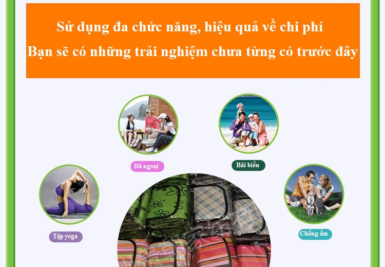 Thảm có một mặt được tráng nhựa bạt giúp chống thấm nước, phù hợp dùng trong sinh hoạt ngoài trời khi đi picnic, dã ngoại.
