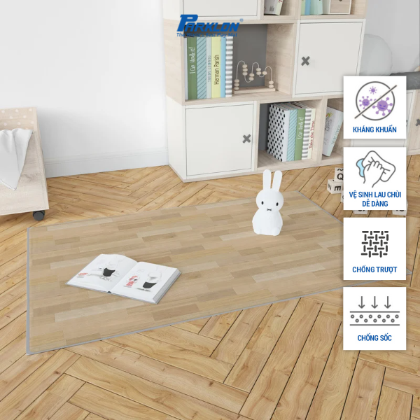 Mua tại TiktokThảm Trẻ Em Hàng Đầu Thế Giới Nhập Khẩu Chính Hãng Hàn Quốc Parklon Thương hiệu: Parklon Xuất xứ: Hàn Quốc Chất liệu: PE Họa Tiết: Thị Trấn Vịt Tuyết + Sàn Gỗ Kích thước: 200cmx150cmx1.5cm Độ bền: 10 năm Sau thời gian tung tăng, bé yêu dễ dàng xếp gọn chiếc thảm và cất đi. Trọng lượng thảm chỉ 200g vô cùng nhẹ nhàng. Bề mặt của thảm chống trơn trượt, không bám bẩn và hoàn toàn không thấm nước nên có thể dễ dàng làm sạch với khăn ướt. Giữ không gian sạch sẽ và an toàn cho các bé. Lỡ tung tăng quá đà, ngã cũng không sao. Độ dày của thảm lên đến 1,2 cm, độ ma sát cao và cực kỳ êm ái. Bảo vệ trẻ khỏi những tổn thương do té ngã. Ngoài ra, nhờ độ êm ái, thảm làm giảm 50% tiếng ồn từ các tác động lên mặt sàn. Giúp các bé có thể vui chơi thỏa thích. THẢM TRẺ EM HÀNG ĐẦU THẾ GIỚI CHÍNH HÃNG PARKLON: Bảo vệ con bạn khỏi sàn nhà cứng khi các bé tập bò, tập đứng hay tập đi. Thảm trẻ em Parklon được thiết kế đặc biệt để hấp thụ tác động và mang lại sự thoải mái hàng giờ cho các bé. ★ Chất liệu cao cấp được nhập khẩu từ Đức, kết hợp với công nghệ tiên tiến nhất của Parklon để tạo nên những chiếc thảm trẻ em hoàn hảo nhất. ★ Công nghệ chống sốc, chống va đập và giảm tiếng ồn được cải tiến giúp trẻ thoải mái vui chơi. ★ Thiết kế 2 mặt với hoa văn đặc biệt chống trơn trượt và công nghệ bo góc đặc biệt không gây nguy hiểm cho bé. ★ Công nghệ Nano kháng khuẩn quanh năm, không gây dị ứng, an toàn ngay cả với làn da của trẻ sơ sinh. ★ Khả năng chống nước 100% và dễ dàng vệ sinh, chỉ cần lau sạch vết bẩn bằng khăn. ★ Bề mặt thảm mềm mại, êm ái kết hợp cùng chất liệu đặc biệt giúp giữ ấm vào mùa đông, không nóng vào mùa hè. ★ Chất liệu thân thiện với môi trường, không chứa các chất độc hại và kim loại nặng. ★ Đạt chứng nhận an toàn từ tổ chức toàn cầu: KC, SGS, ISO 9001, An toàn Châu Âu EN71