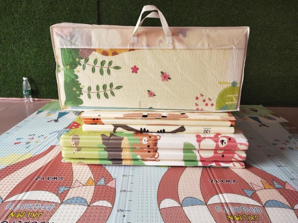 Thảm Xốp Gấp Gọn Chống Thấm, Thảm XPE 2 Mặt Phủ Silicon Chống Trơn, Chống Ngã, Cho Bé Tập Bò Kèm Túi