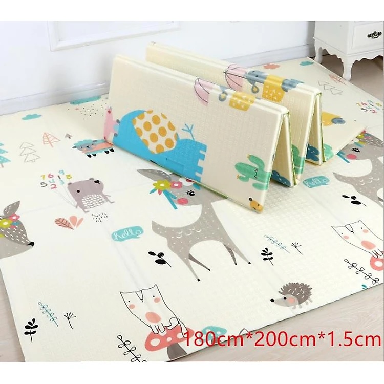 - Thảm XPE cao cấp không thấm nước, 2 mặt đều có thể dùng được và được in họa tiết sặc sỡ đáng yêu