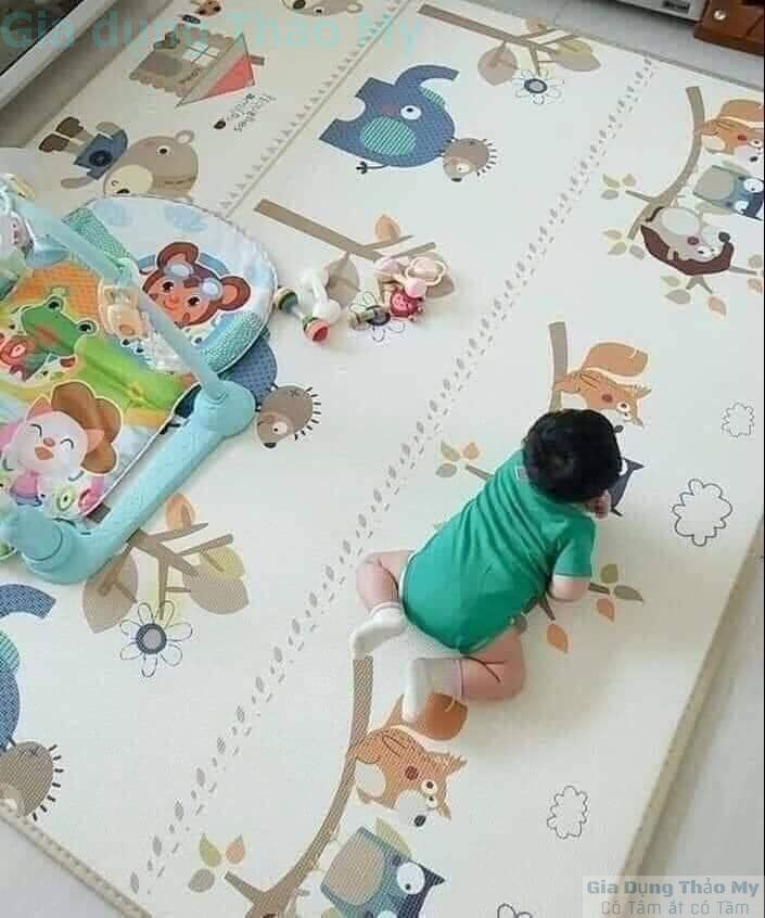 Không mùi (cả trước và sau khi sử dụng), không có mùi nhựa, mùi xốp như các chất liệu rẻ tiền khác Mềm mại và thoải mái, bảo vệ bé khi vấp ngã Bề mặt thảm xốp có vân nổi chống trơn trượt. Kích thước: 1,8x2m, 2 mặt Thảm gập gọn có túi xách di chuyển dễ dàng