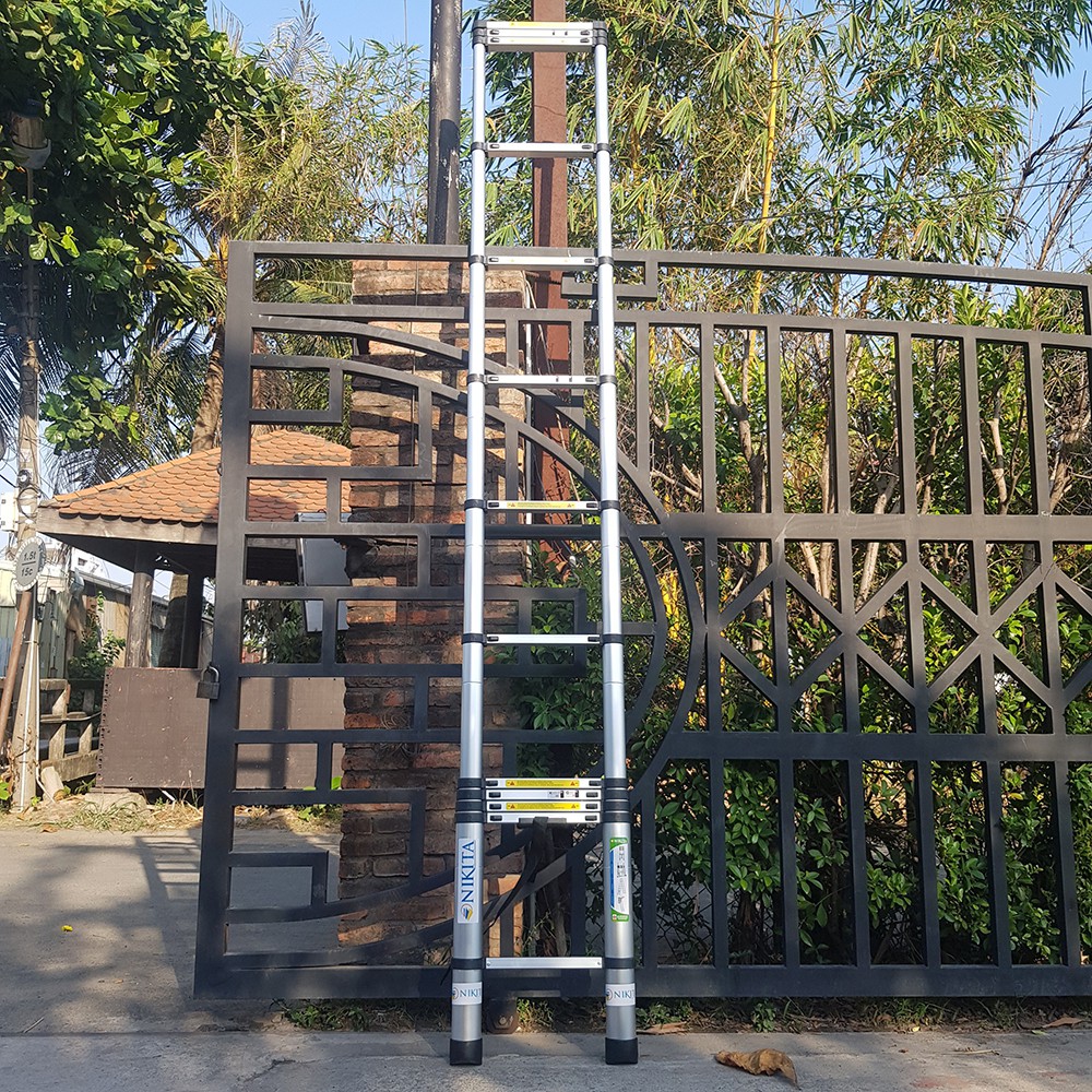 Thang nhôm rút gọn, an toàn, tiện dụng, đa năng - Nhôm 6063 không rỉ - Hàng chính hãng NIKITA Chất liệu : Nhôm + Plastic Màu sắc : Ống trắng + Đai nhựa