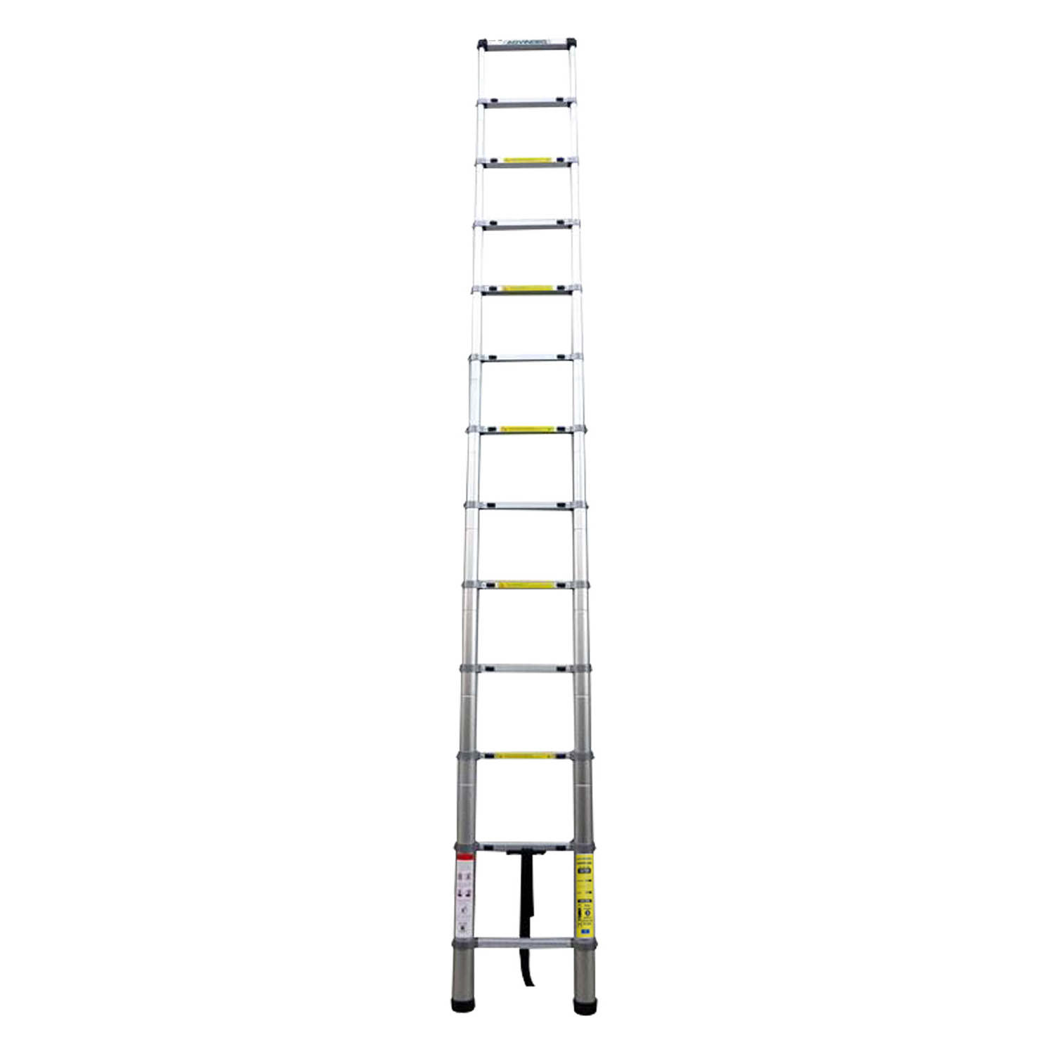 THÔNG SỐ KỸ THUẬT - Kích thước: 87x48x9 cm - Chiều cao tối đa: 3.8m - Chiều cao rút gọn: 0.81m - Số bậc: 13 bậc - Chất liệu: Hợp kim nhôm - Độ dày
