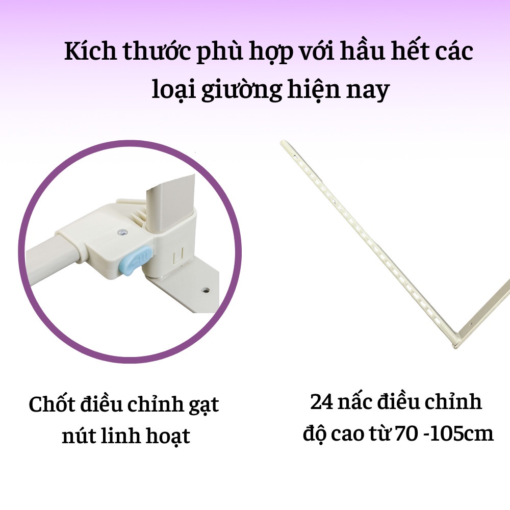 - Thanh điều chỉnh độ cao linh hoạt phù hợp với đa số nệm của các gia đình. Thiết kế chắc chắn, chất liệu an toàn