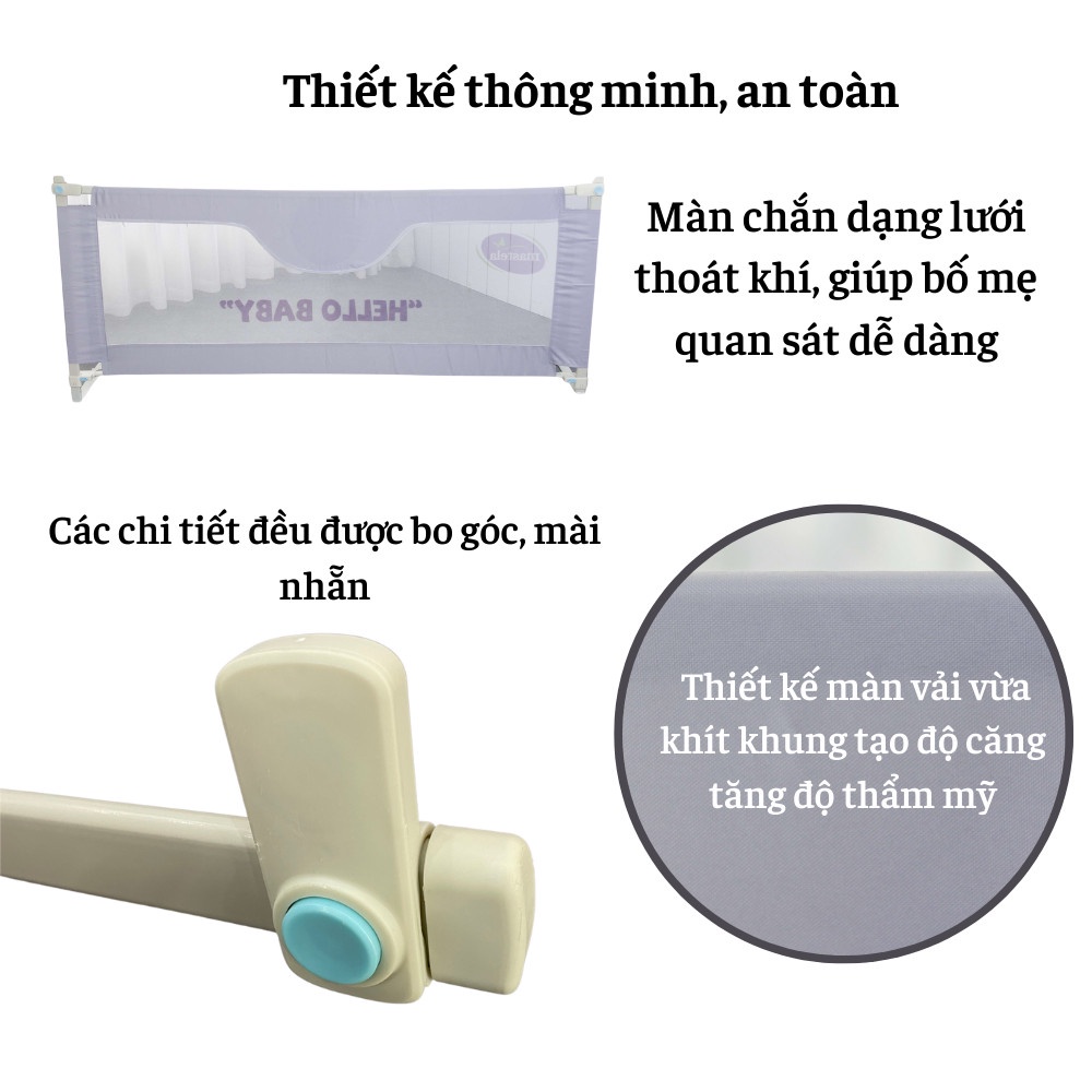 ✨Thanh chắn giường cho bé điều chỉnh độ cao linh hoạt bảo vệ bé chống va đập, ngã lộn hình Hello Baby 4BABIES