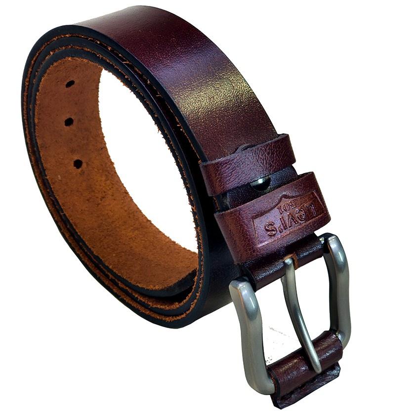 Thắt lưng da bò một lớp dây nâu đỏ, mặt hợp kim, khoá lăn tự động, dài 115-20cm