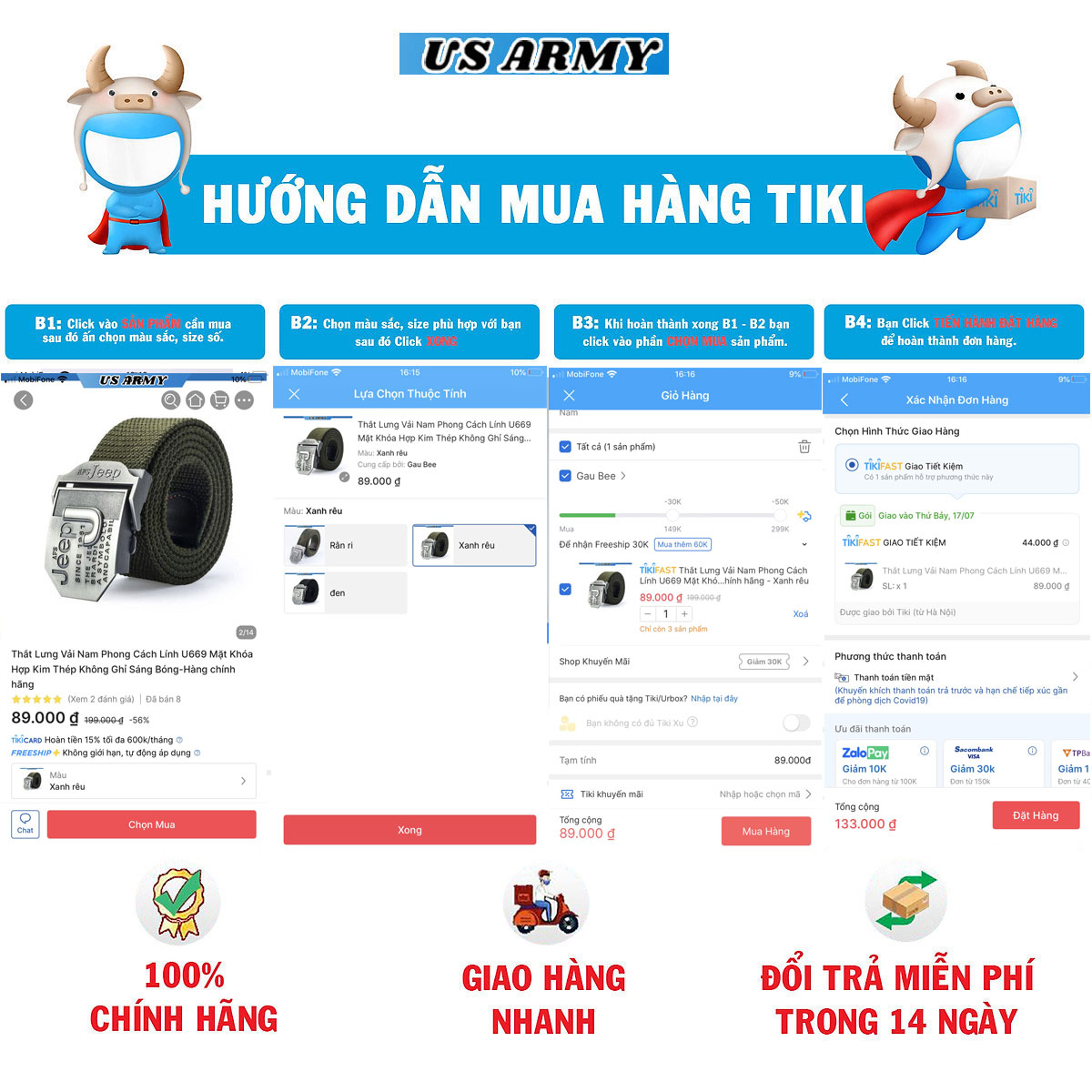 - Thắt Lưng Nam Vải Dù U104 US ARMY cao cấp Phong Cách Lính Mỹ thiết kế đẳng cấp dành cho phái mạnh thể hiện sự mạnh mẽ, khoẻ khoắn, chất liệu mặt khóa dây lưng sử dụng hợp kim thép không ghỉ cao cấp luôn sáng bóng, dây lưng dệt từ sợi bông thiên nhiên thoáng khí luôn mang đến cảm giác dễ chịu cho các chàng trai.