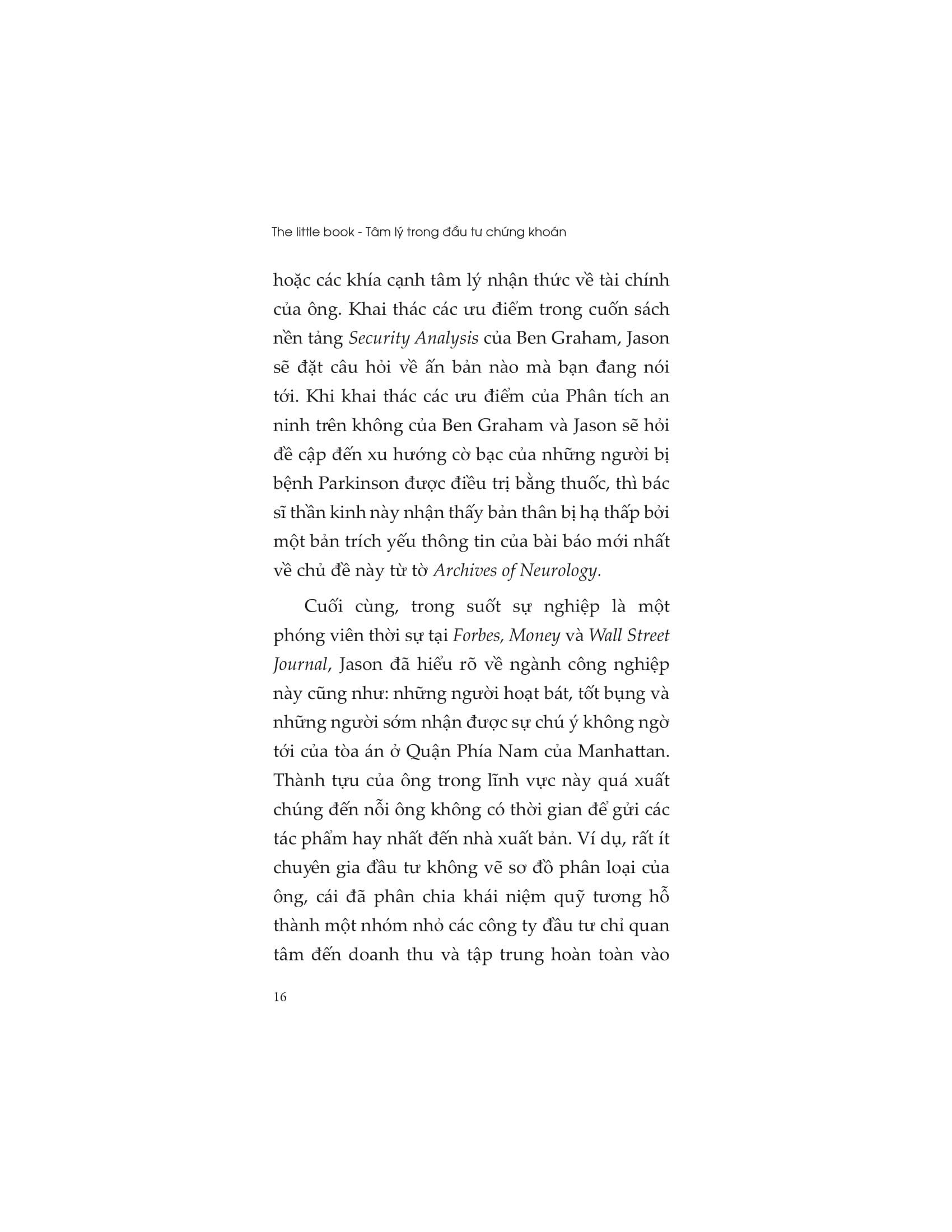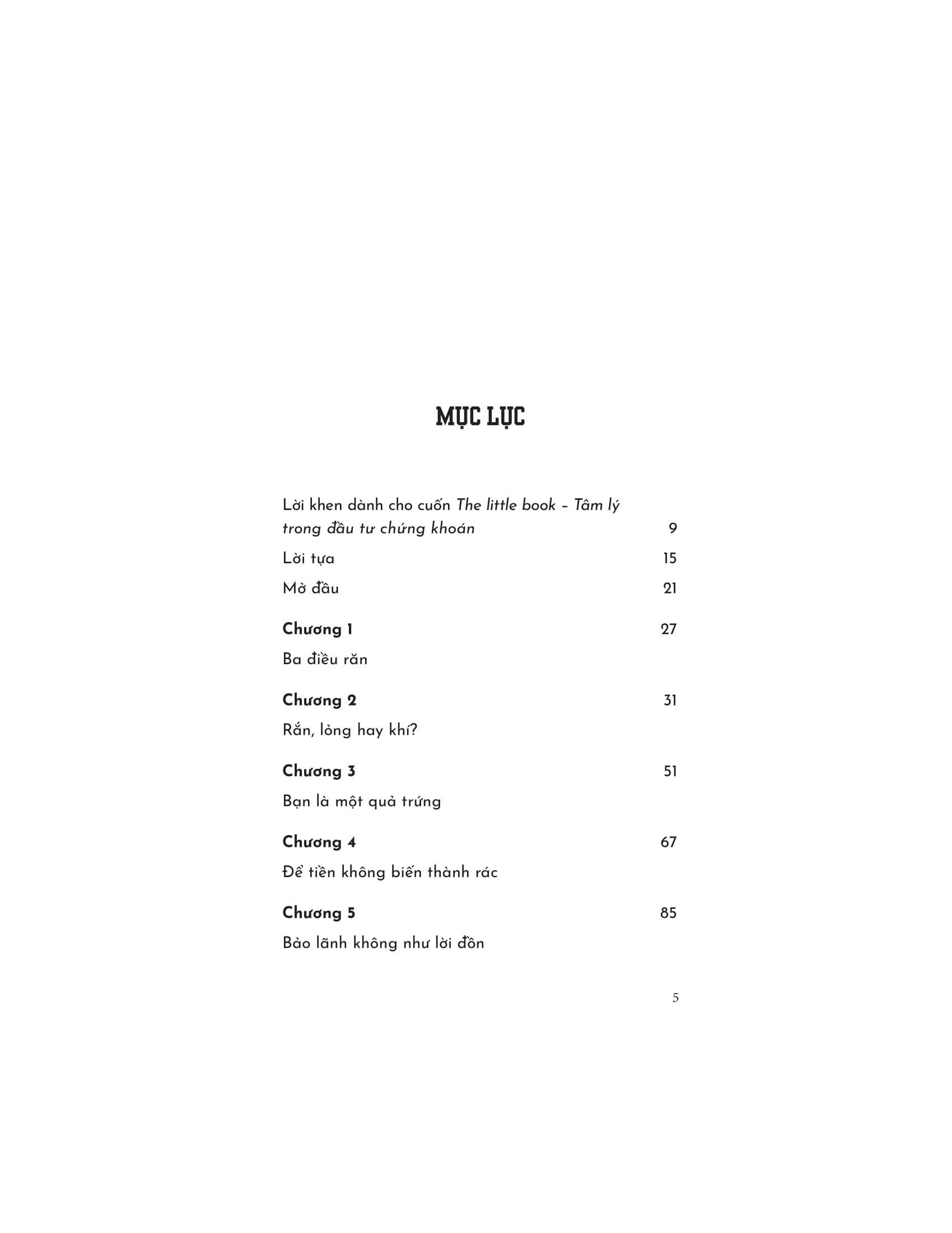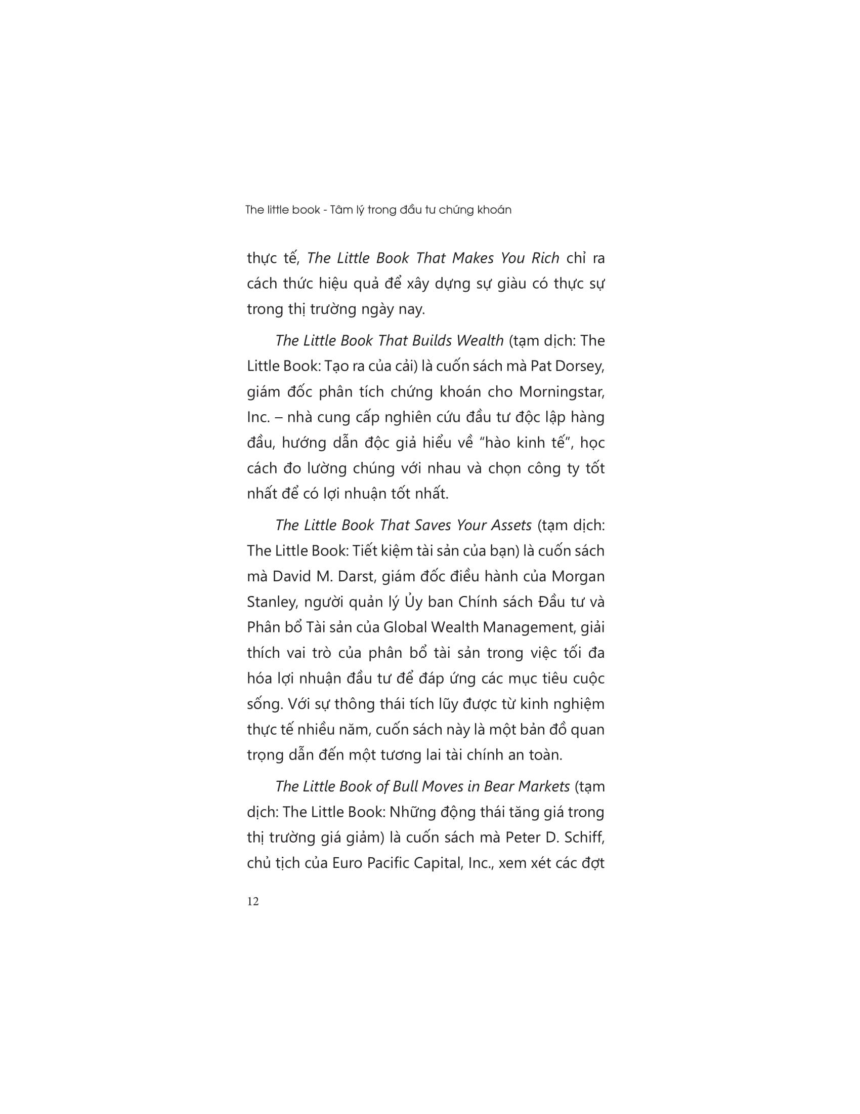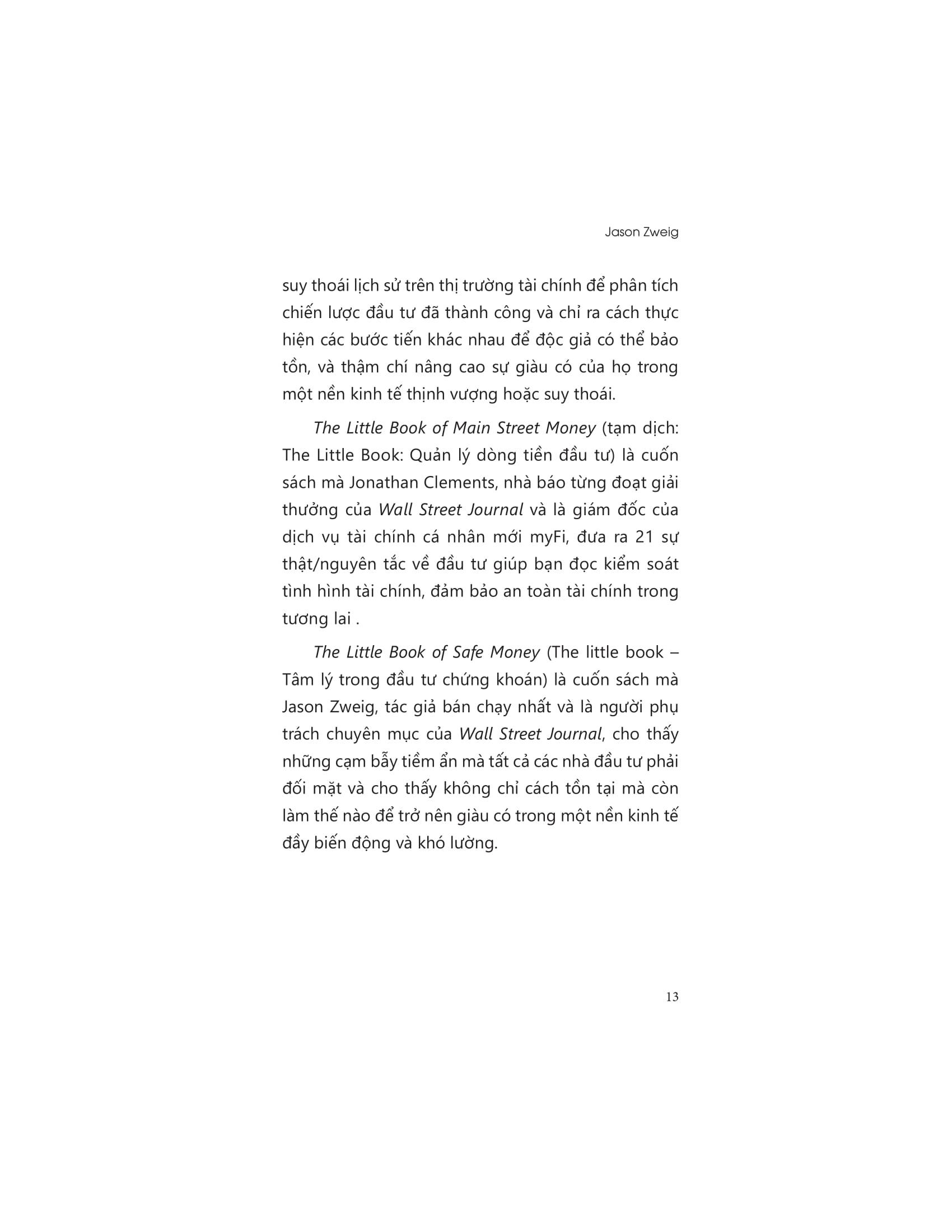 “The Little Book: Tâm lý trong đầu tư chứng khoán” là cuốn sách mà Jason Zweig, tác giả bán chạy nhất và là người phụ trách chuyên mục của Wall Street Journal, cho thấy những cạm bẫy tiềm ẩn mà tất cả các nhà đầu tư phải đối mặt và cho thấy không chỉ cách tồn tại mà còn làm thế nào để trở nên giàu có trong một nền kinh tế đầy biến động và khó lường.