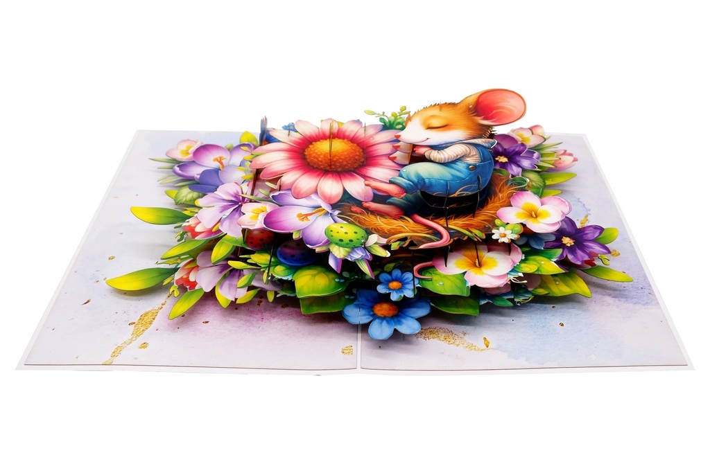 ✨Thiệp 3D Chuột Con Ngủ Trong Vườn Hoa – Thiệp Pop Up Dễ Thương, Độc Đáo Tặng Sinh Nhật, Lễ Tình Nhân, Ngày Quốc Tế Thiếu Nhi, F59