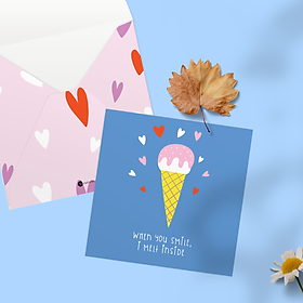 ✨Thiệp tình yêu, Valentine, tỏ tình, SDstationery I Melt Inside, hình cây kem ngọt ngào, vuông 12x12 cm