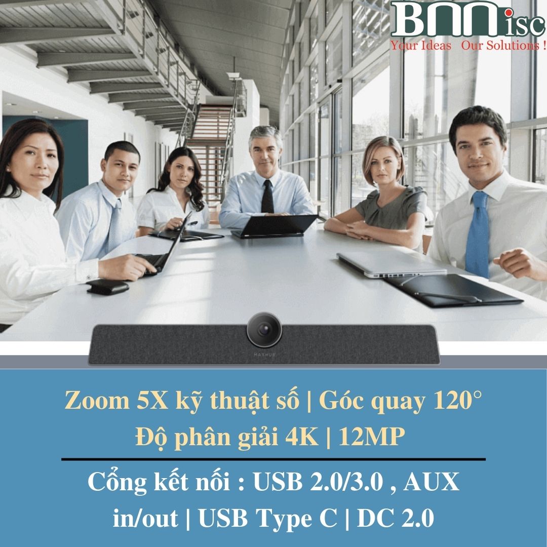Hệ thống Hội Nghị Truyền Hình chuyên nghiệp MaxHub Camera : - Len kính Sony Type 1/2.3, CMOS, 12.3 MP , 4K@30fps, e-PTZ - Góc quay 120° , Lên/Xuống 15° , Tự động cân bằng