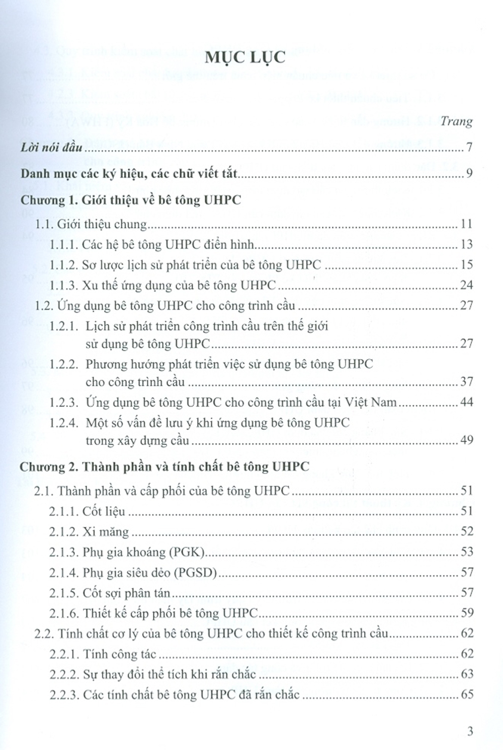 Cuốn sách giới thiệu về cơ sở lý thuyết của vật liệu UHPC, các ứng dụng chính của bê tông UHPC trên thế giới, đặc biệt cho công trình cầu. Sau đó, cơ sở thiết kế, thi công và đánh giá hiệu quả kinh tế dầm cầu UHPC được trình bày. Sách được sử dụng làm tài liệu học tập cho sinh viên và học viên sau đại học ngành Kỹ thuật xây dựng công trình giao thông và những ngành có liên quan.