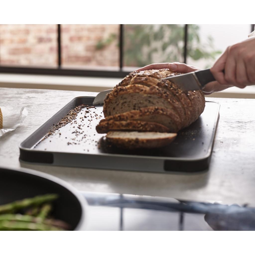 Cut&Carve Plus có nhiều công dụng trong một thiết kế đầy màu sắc. Một mặt có tay cầm thịt tích hợp để hỗ trợ thêm cho việc cắt thịt trong khi mặt còn lại cung cấp bề mặt cắt mịn cho tất cả các loại chế biến thực phẩm khác. Các chi tiết thông minh khác bao gồm đế góc cạnh, các cạnh nâng lên và các góc dễ rót để thu thập và loại bỏ vụn và chất lỏng. Nếu có món nướng Chủ Nhật trong thực đơn, bạn sẽ muốn Cut&Carve Plus trên mặt bếp.