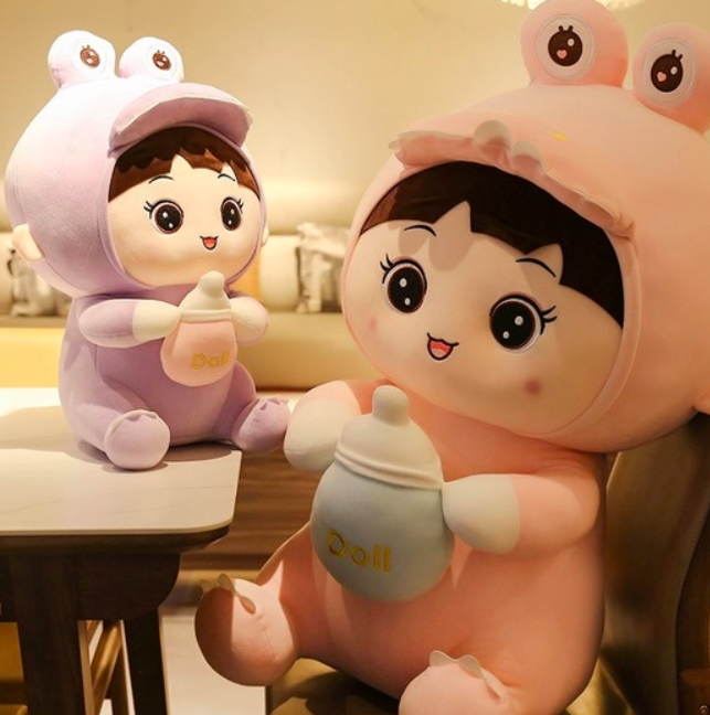 Gấu Bông Em Bé Cosplay Ôm Bình Sữa Khủng Long