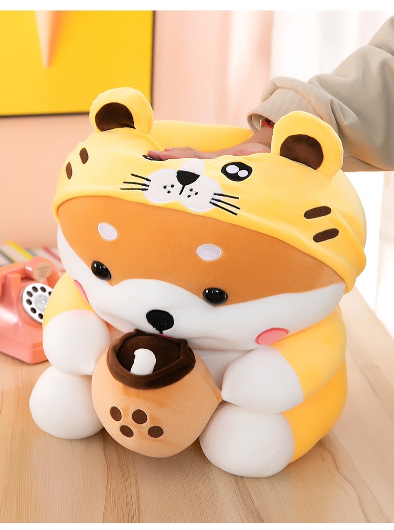 ✨Thú nhồi bông shiba cosplay hổ ôm trà sữa - Size từ 40cm đến 55cm - Quà tặng shiba ôm trà sữa nhồi bông êm mịn dễ thương - Gối ôm mềm mịn cho bé