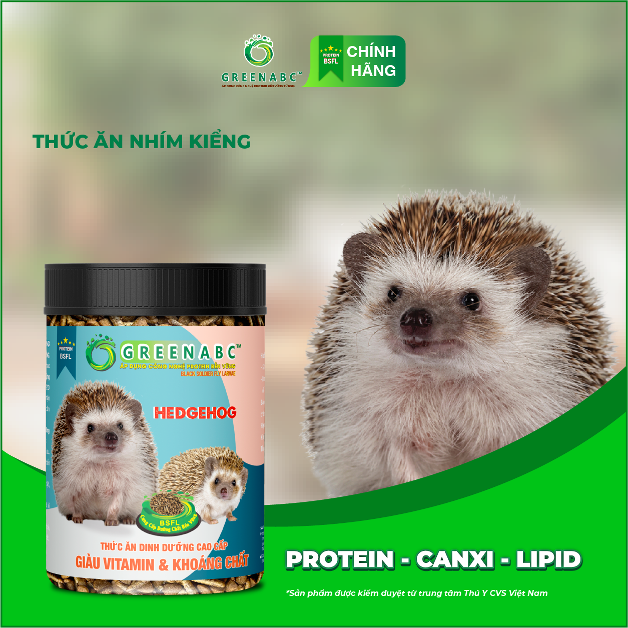 Mua tại TiktokGREENABC - THỨC ĂN NHÍM KIỂNG GREENABC là thức ăn cao cấp dành cho NHÍM KIỂNG. Đặc biệt sản phẩm GREENABC được sản xuất theo phương pháp Áp dụng công nghệ PROTEIN bền vững rất giàu PROTEIN – CANXI – LIPID có trong BSFL, đã được Mỹ (AAFCO) và EU chấp nhận đưa vào công thức cho ngành sản xuất thức ăn cho vật nuôi. Sản phẩm GREENABC cung cấp các giá trị dinh dưỡng bền vững cho thú cưng, giúp cho Nhím Kiểng: