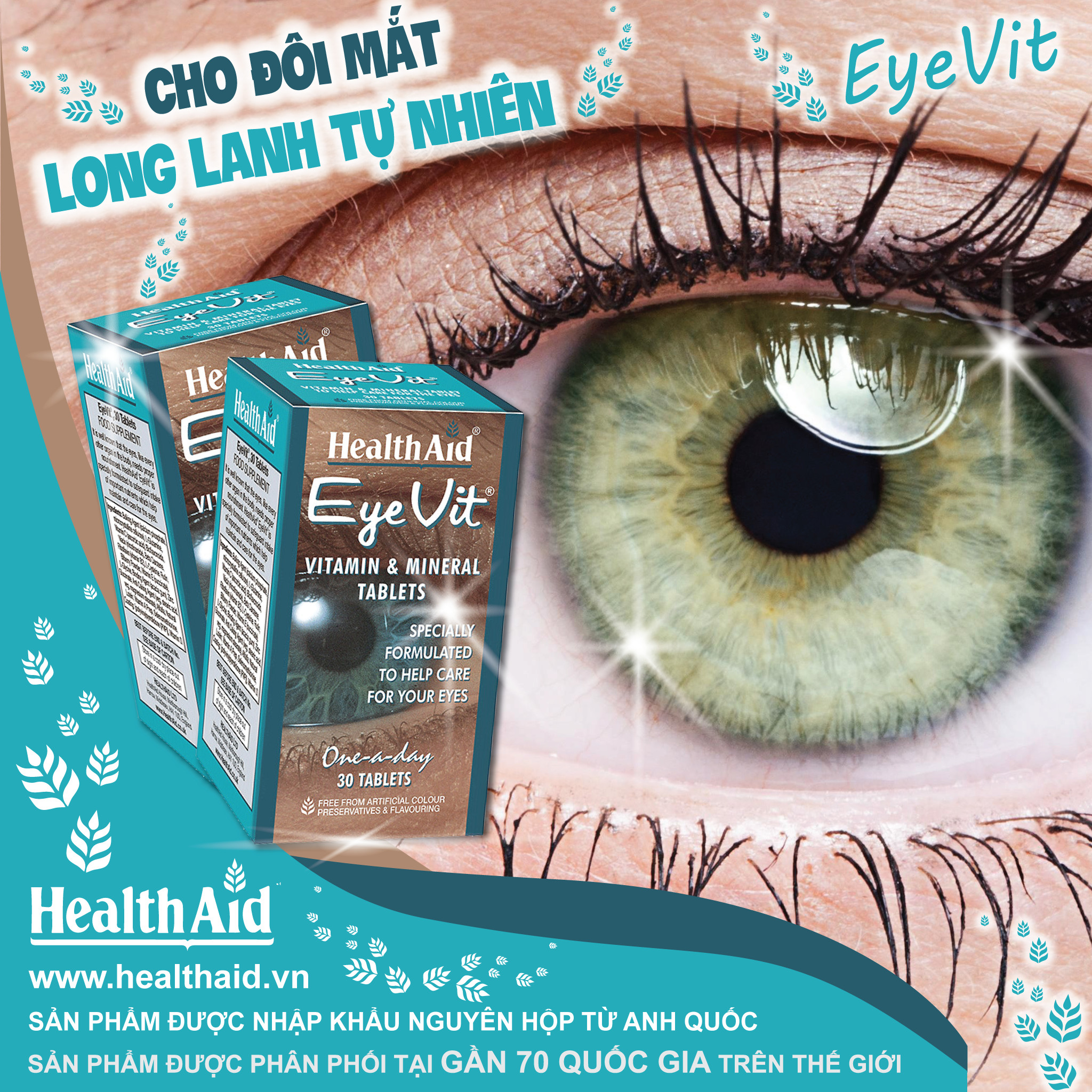 ✨Thực phẩm bảo vệ sức khỏe đến từ Anh Quốc - Viên giữ ẩm cho mắt, ngăn chặn quầng thâm và túi dưới mắt, tăng cường thị lực cho mắt, giúp làm chậm quá trình thoái hóa điểm vàng, đục thủy tinh thể và thoái hóa võng mạc HEALTH AID EYEVIT (Hộp 1 chai 30 viên)
