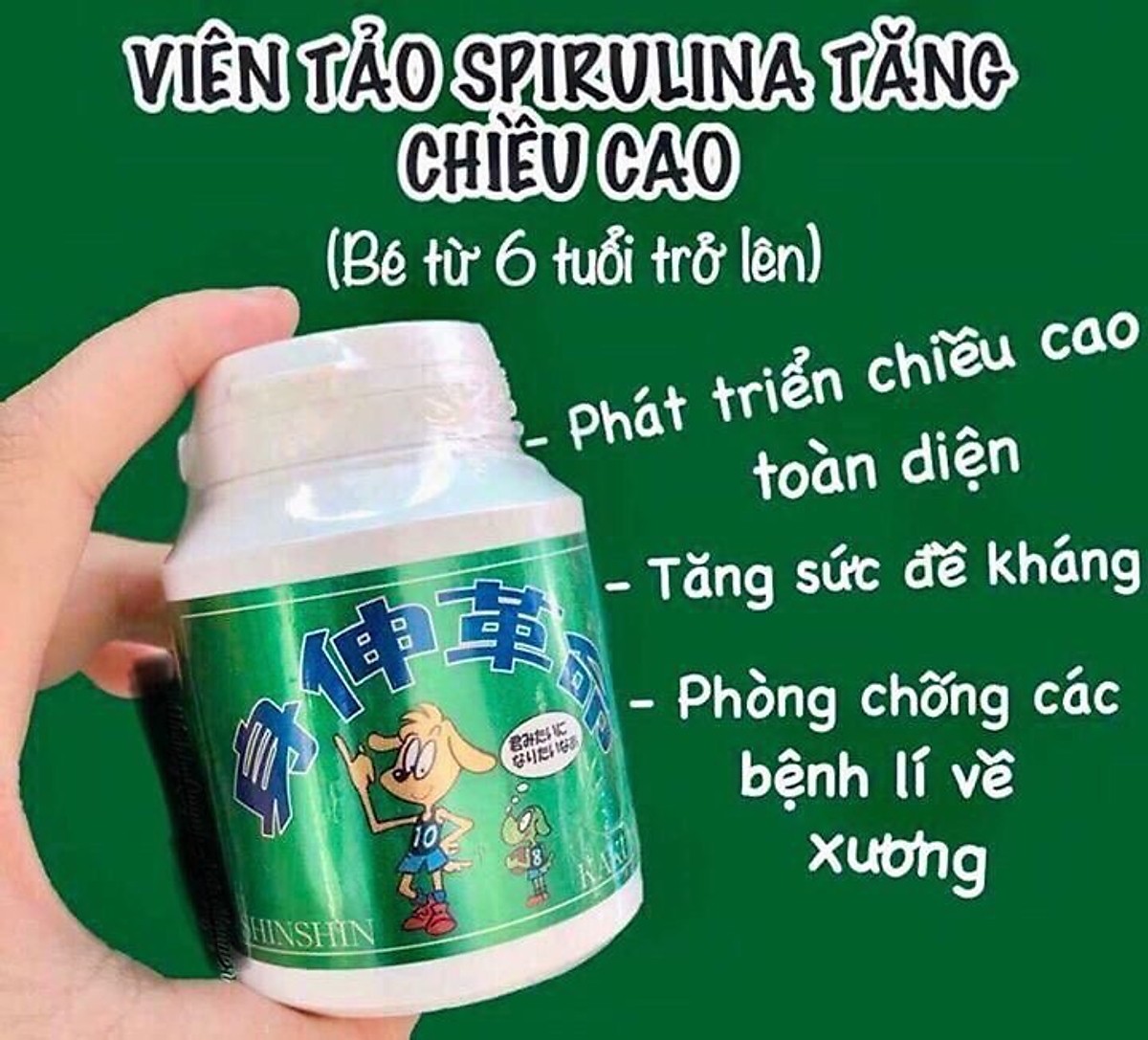 - Tảo tăng chiều cao Shinshin Kakumei Nhật Bản dùng cho trẻ từ 6 tuổi trở lên.