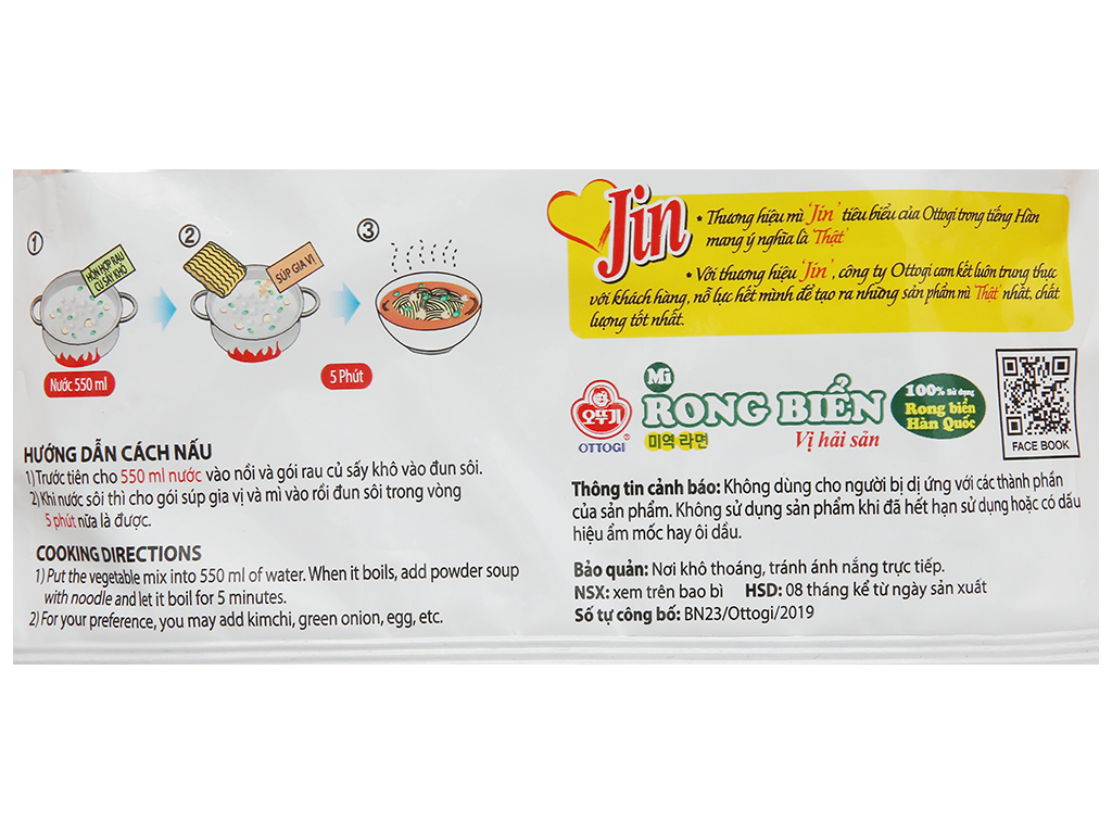 - Mì Jin Ottogi được sản xuất dựa công nghệ hiện đại, không chứa hóa chất, chất bảo quản độc hại, đảm bảo an toàn cho sức khỏe người tiêu dùng.
