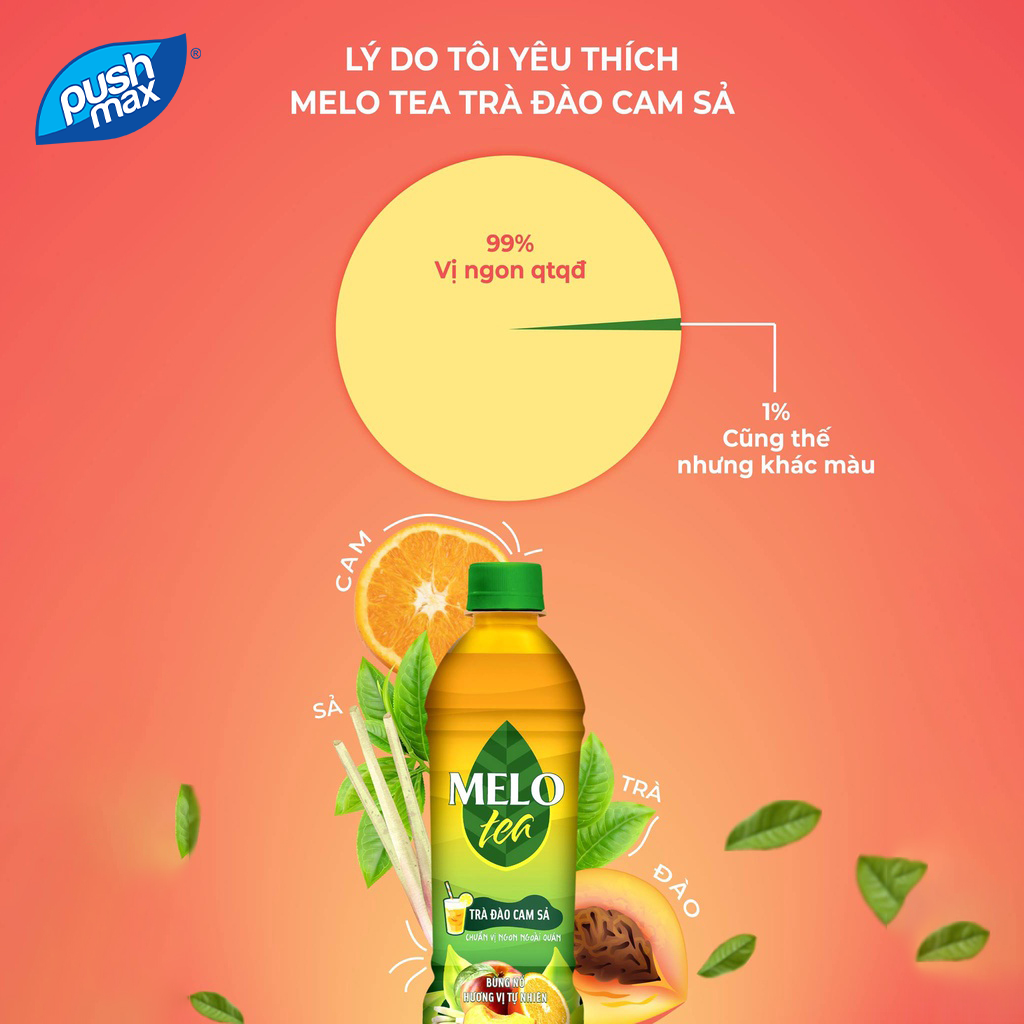 Mua tại TiktokChẳng cần phải tốn công ra quán mà vẫn được thưởng thức những ly trà đào ngọt thơm chuẩn vị ngay tại nhà với Melo Tea Trà Đào Cam Sả mới nhất! Sự hòa quyện hoàn hảo giữa vị ngọt thanh của đào, chua dịu của cam và hương thơm lôi cuốn đặc trưng của sả đã mang đến hương vị bùng nổ của Melo Tea Trà Đào Cam Sả - tựa như bản hòa tấu đầy mê hoặc của những hương vị, thỏa mãn cả những khách hàng sở hữu vị giác khó tính nhất! Sản phẩm được sản xuất trên dây chuyền công nghệ, thiết bị hiện đại, và được kiểm soát nghiêm ngặt bởi hệ thống quản lý An toàn Vệ sinh Thực phẩm ISO 22000:2005.