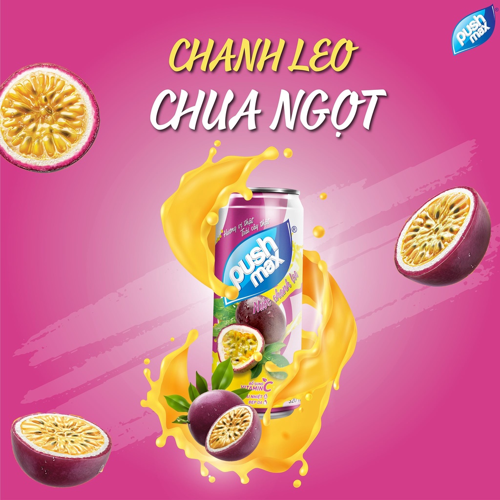 ✨Thùng 24 Lon Nước Trái Cây Pushmax Chanh Leo (320ml x 24 Lon)