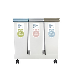 Mua tại TiktokThùng rác phân loại Hiro 3 ngăn Mã SP: HIN.RAPL.003N Kích thước: 537x336x530 mm Khối lượng: 3620 g Chất liệu: Nhựa PP, PA nguyên sinh, hạt màu, phụ gia kháng khuẩn (Ag+), lò xo Màu sắc: Xanh nhạt + Ghi sữa + Nâu Café HƯỚNG DẪN SỬ DỤNG: Dùng để đựng và phân loại rác trong gia đình, văn phòng, nhà hàng,… BẢO QUẢN: nơi khô ráo, thoáng mát. Tránh xa nguồn nhiệt ƯU ĐIỂM: Thiết kế hiện đại, dễ dàng tháo lắp và vệ sinh, bánh xe di động giúp di chuyển dễ dàng