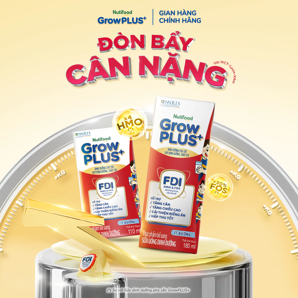 Nutifood GrowPLUS+ Nhãn hiệu Sữa trẻ em Số 1 Việt Nam với công thức FDI độc quyền nghiên cứu bởi Viện Nghiên Cứu Dinh Dưỡng Nutifood Thụy Điển, xây dựng nền tảng “Đề Kháng Khỏe,