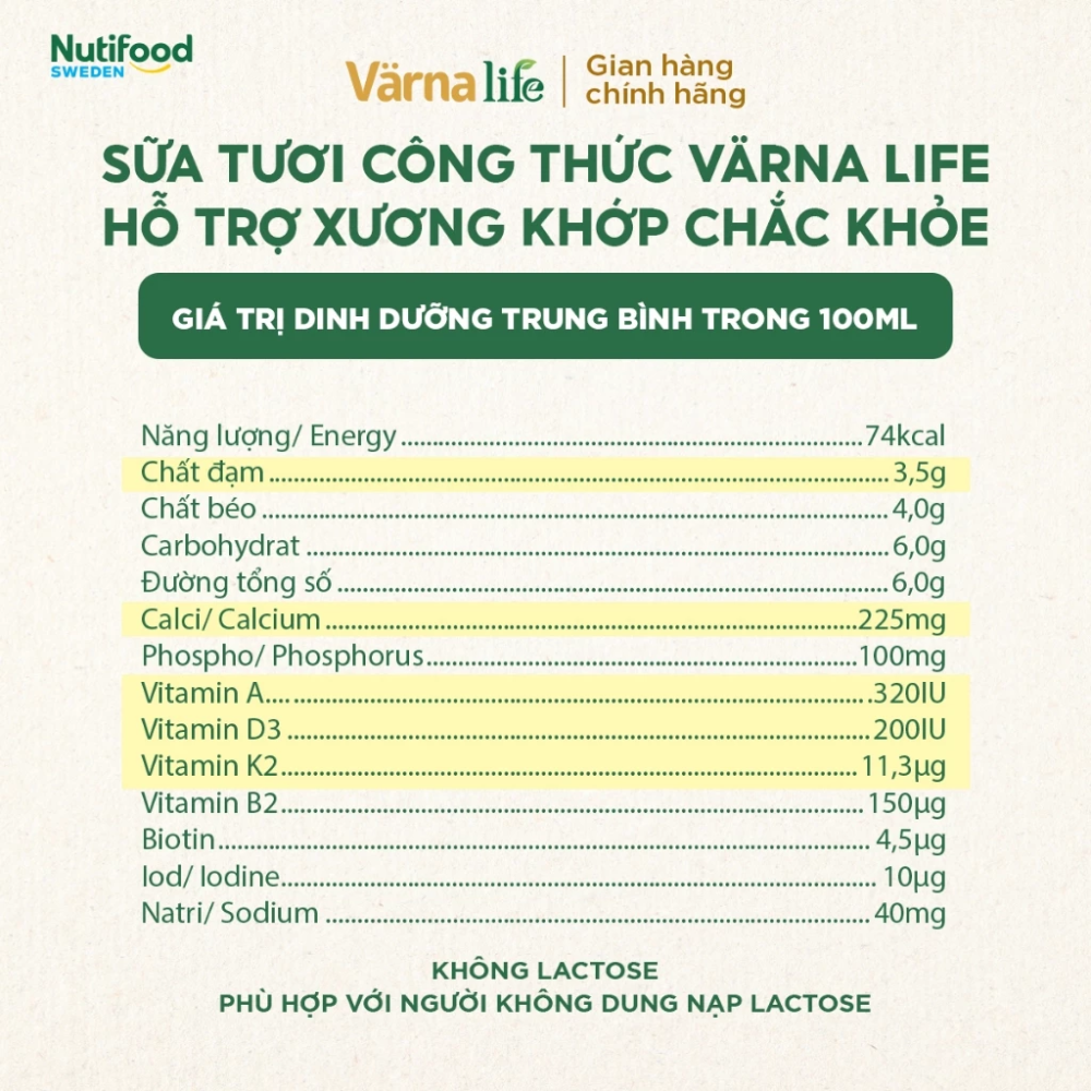 Mua tại TiktokTPBS Värna Life Sữa Tươi Công Thức (Xanh) bổ sung Calci, Vitamin D3, K2 cho xương khớp chắc khỏe, khối cơ khỏe mạnh .