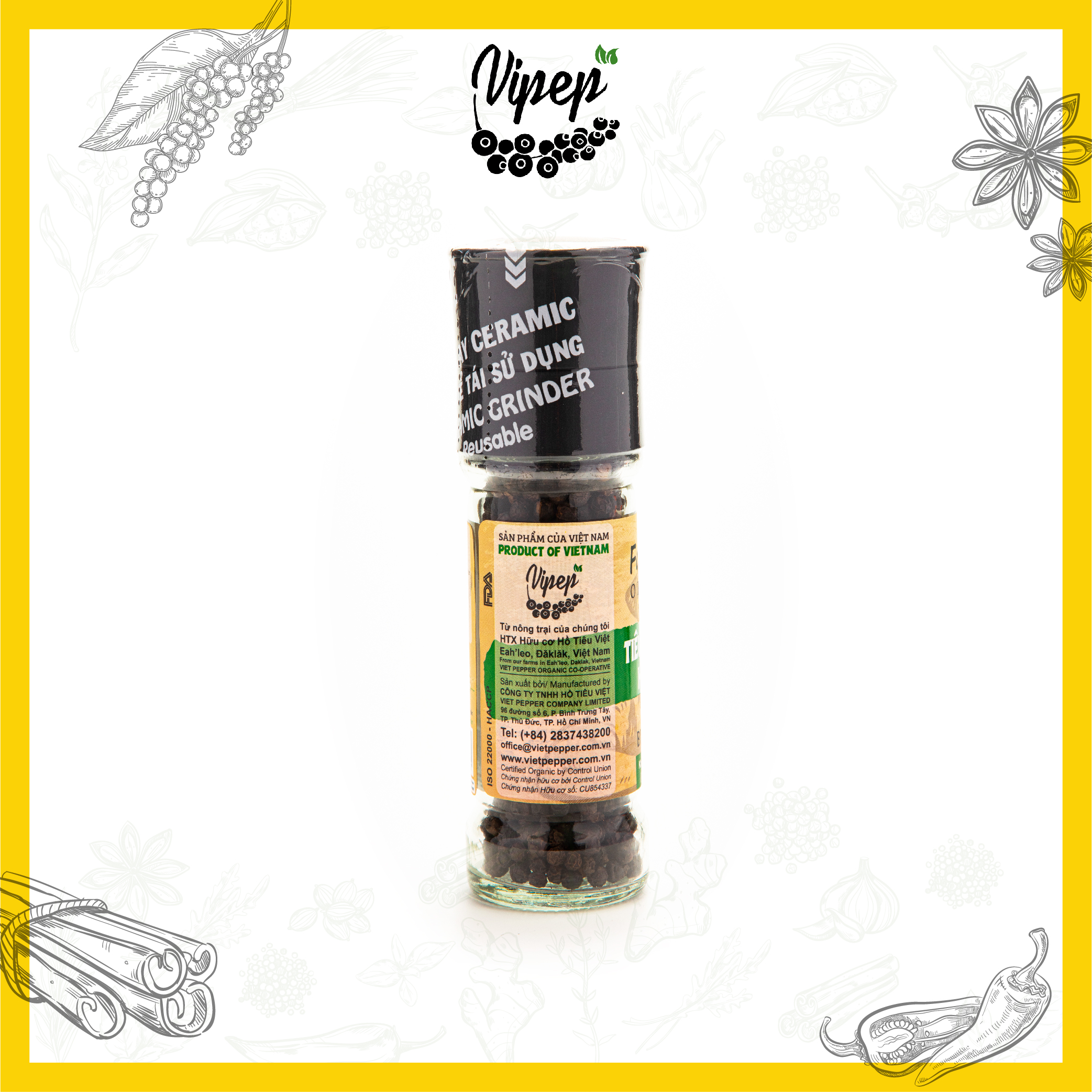 Sản phẩm tiêu cao cấp với 100% hạt tiêu Phú Quốc, không lẫn tạp chất. Đạt chứng nhận an toàn vệ sinh thực phẩm theo tiêu chuẩn Haccp & BRC toàn cầu. Thông tin chi