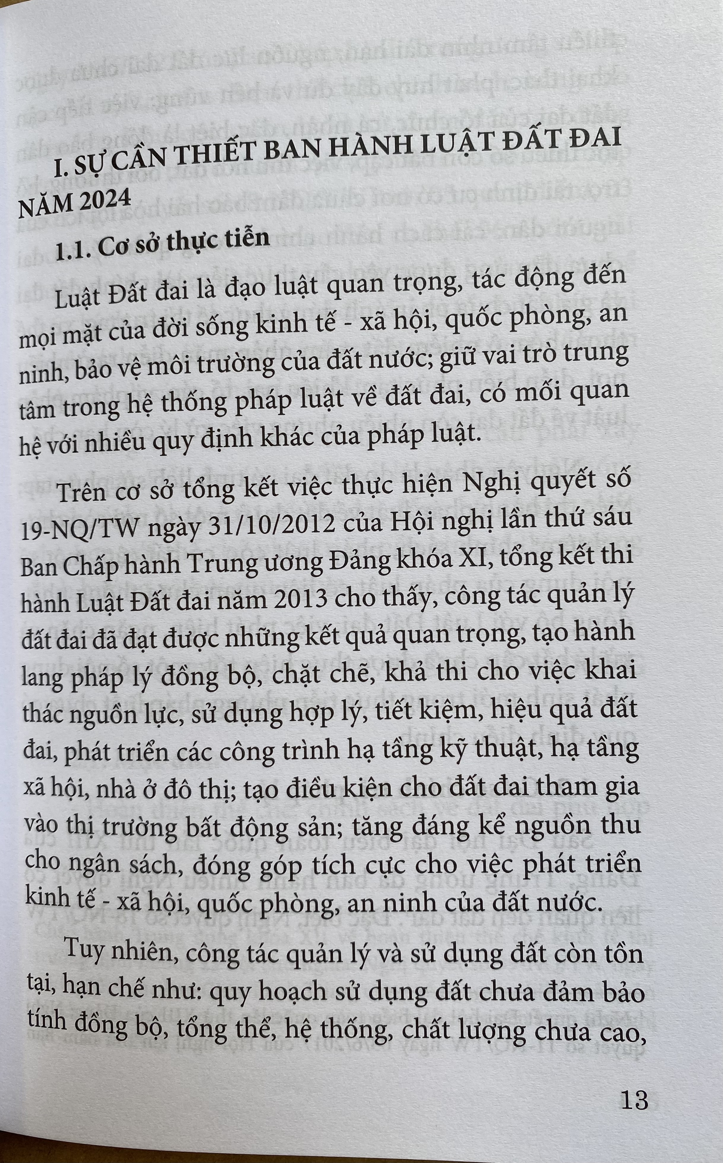 Theo Hiến pháp năm 2013, đất đai là tài nguyên đặc biệt của quốc gia, nguồn lực quan trọng phát triển đất nước, được quản lý theo pháp luật (khoản 1 Điều 54), vì vậy, Luật Đất đai luôn là đạo luật quan trọng của nước ta. Nhằm khắc phục hạn chế, vướng mắc trong thực tiễn thi hành Luật Đất đai năm 2013, ngày 18/01/2024, tại kỳ họp bất thường lần thứ 5, Quốc hội khóa XV đã thông qua Luật Đất đai năm 2024.
