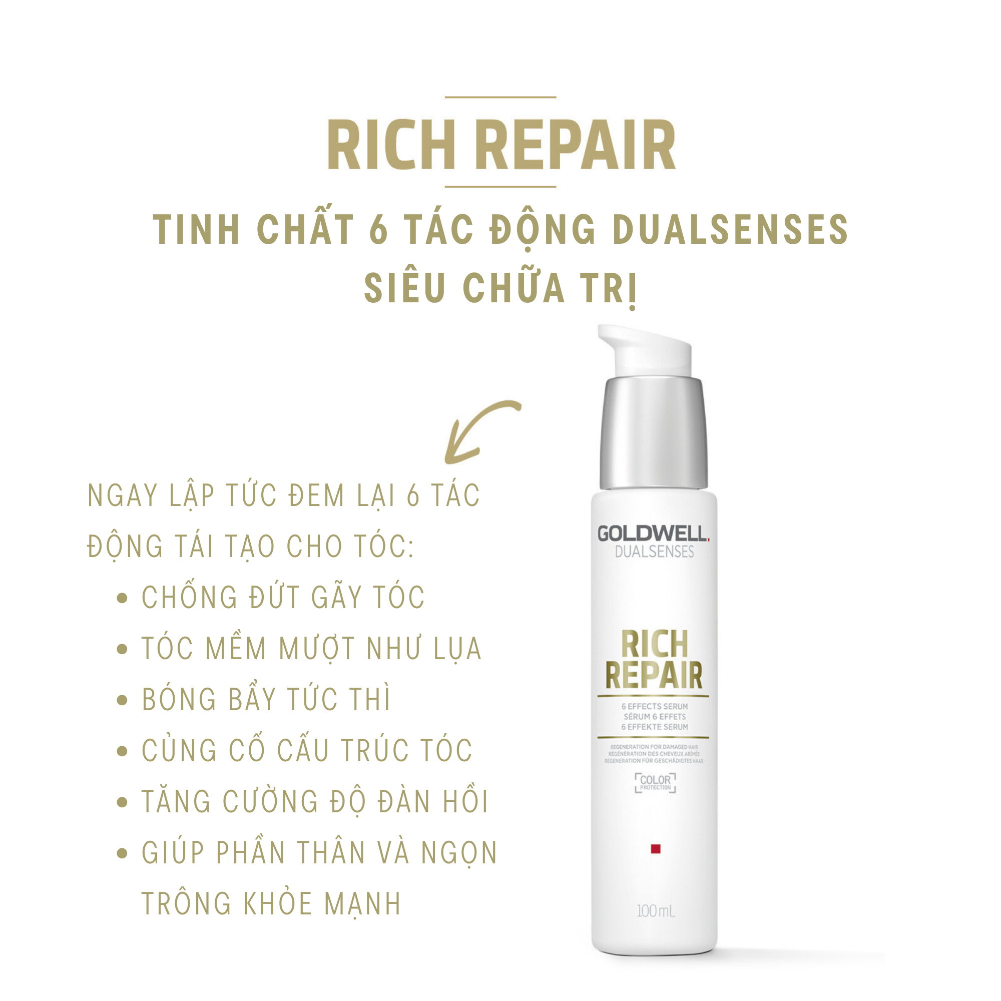 Tinh Chất 6 Tác Động Phục Hồi Tóc Hư Tổn Goldwell Rich Repair Dưỡng Tóc Mềm Mượt, Chắc Khỏe 100ml - Phù hợp với tình trạng tóc: + Tóc hư tổn trung bình tới hư