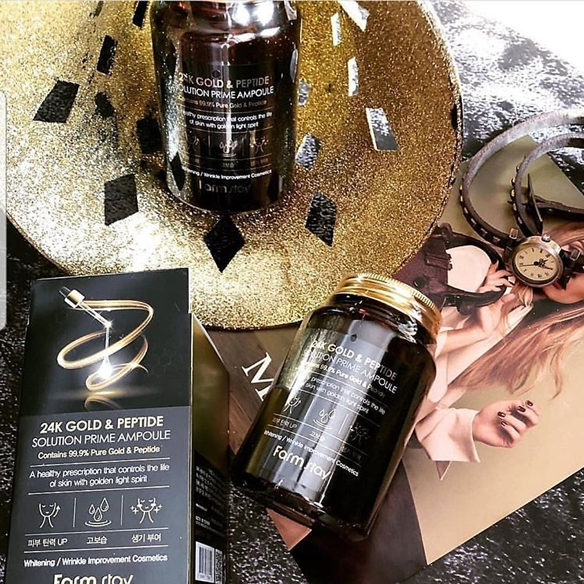 ✨Tinh Chất Dưỡng Trắng Ngăn Ngừa Lão Hóa Farmstay 24k Gold & Peptide Perfect Ampoule 250ml – Hàng Chính Hãng