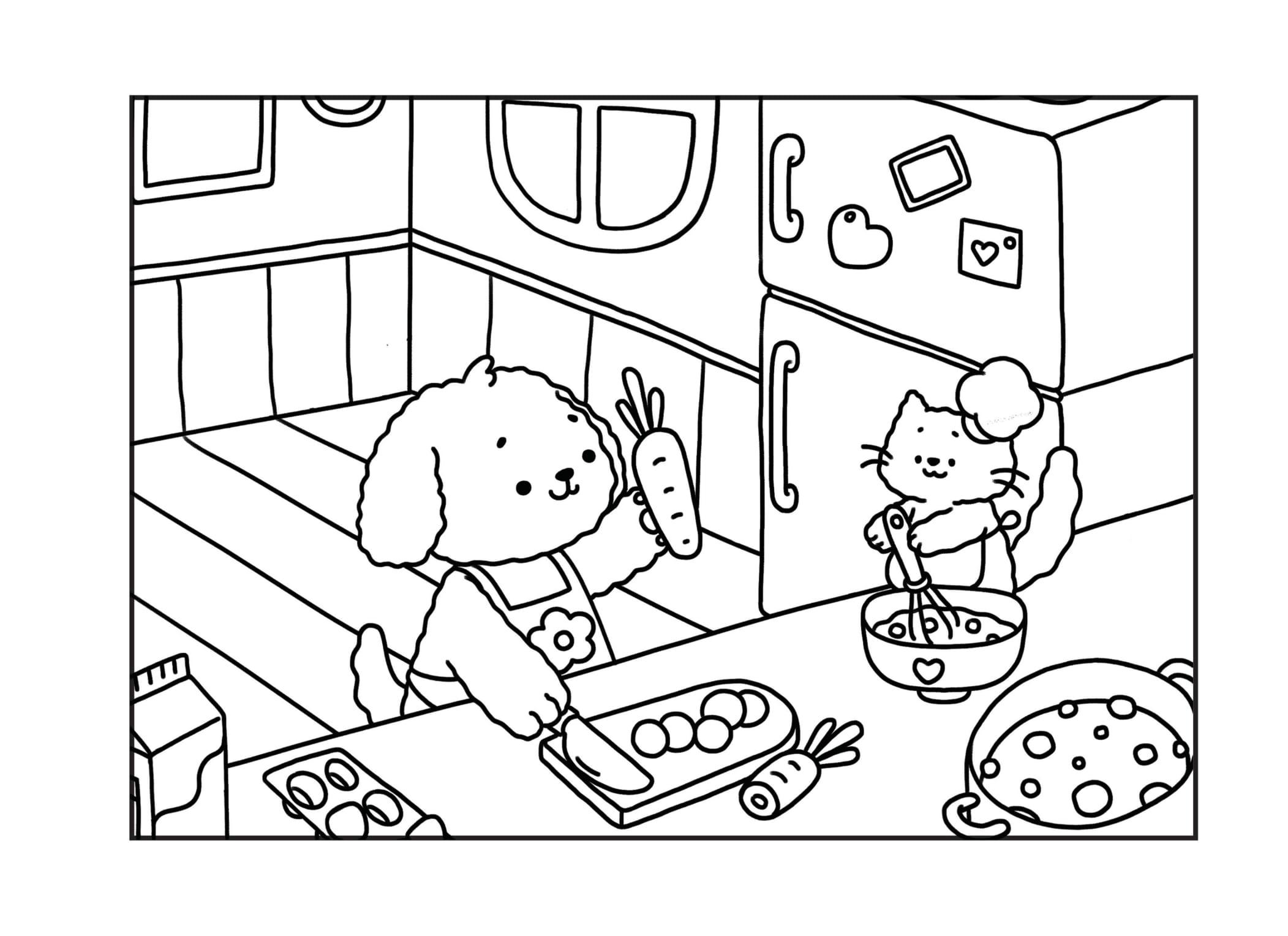 sách tô màu tớ có nuôi một chú mèo cam 🐱🐶