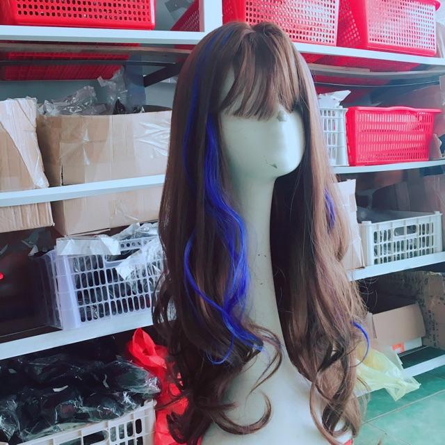 ✨Tóc giả móc line xanh dương cao cấp- tặng lưới chùm tóc- hình thật