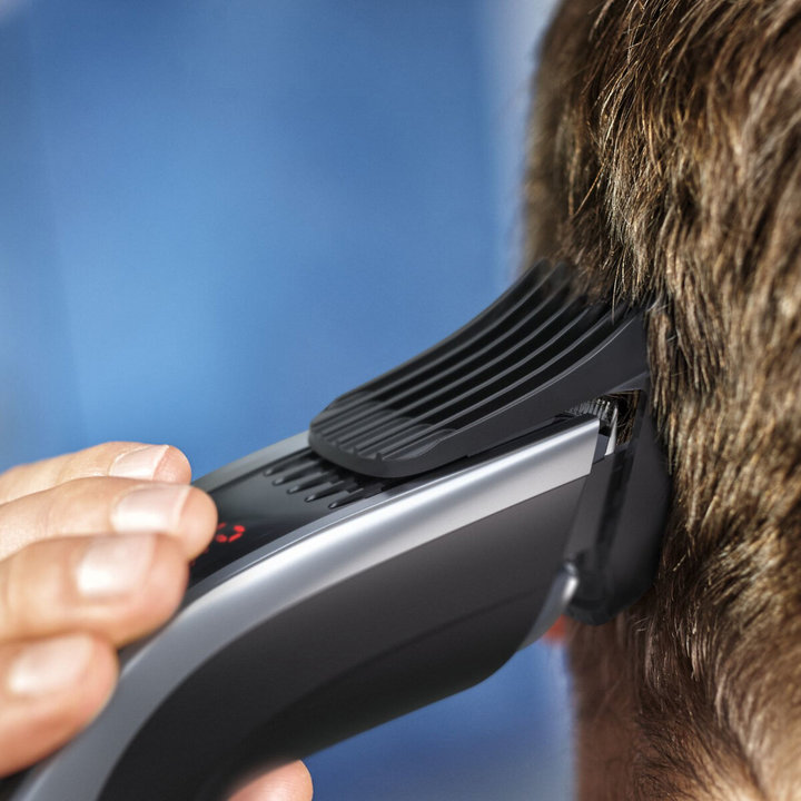 - Cữ lược của tông đơ cho phép bạn cắt tóc ở chiều dài từ 0,5mm – 42 mm và thay đổi độ dài thông qua nút điều khiển ngay trên thân.