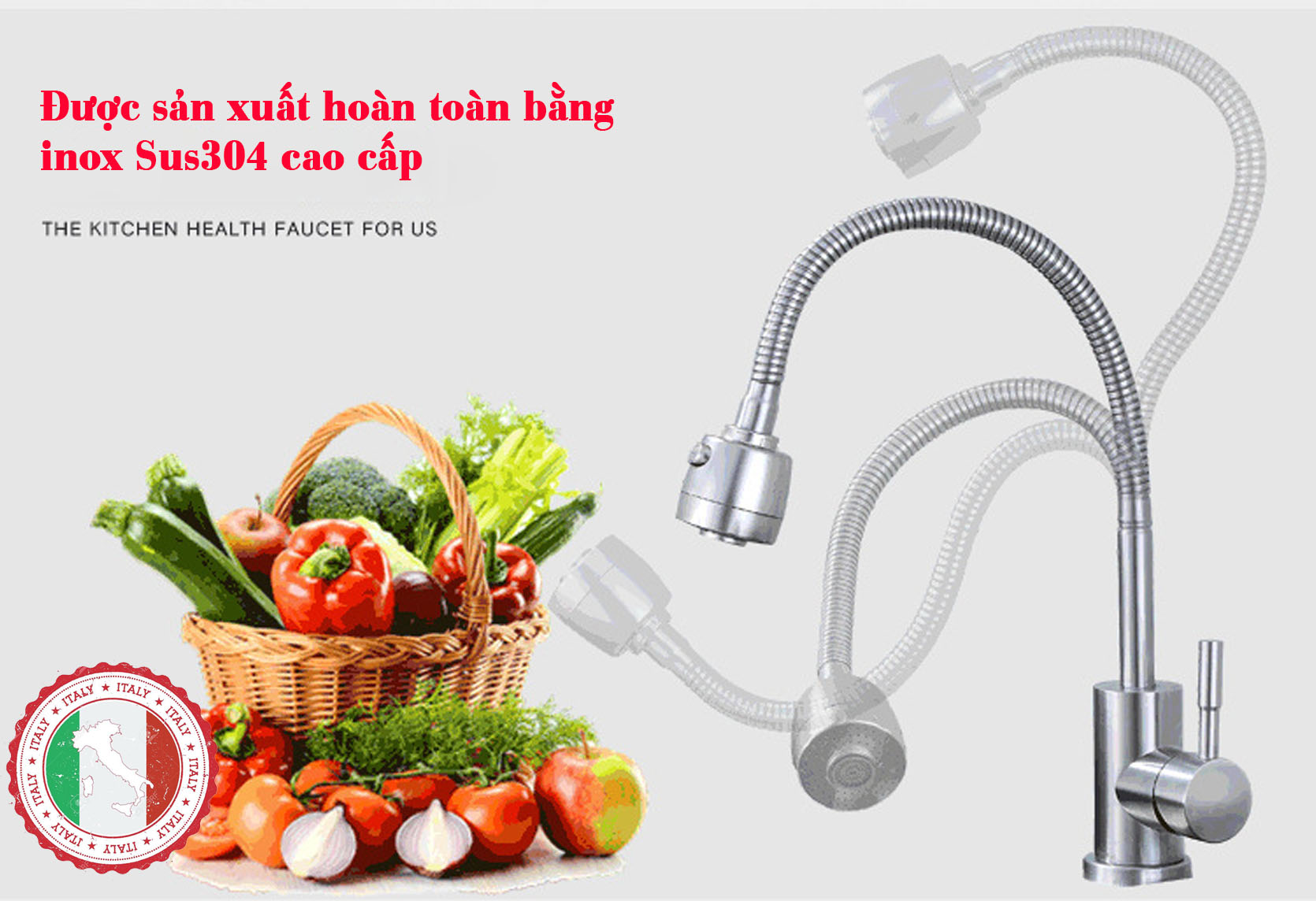 Chất liệu: Inox 304 Thiết kế 2 đường nước nóng – lạnh Thân vòi có thể xoay 360 độ Đầu vòi tạo bọt, hạn chế bắn nước khi sử dụng Bảo hành 5 năm chính