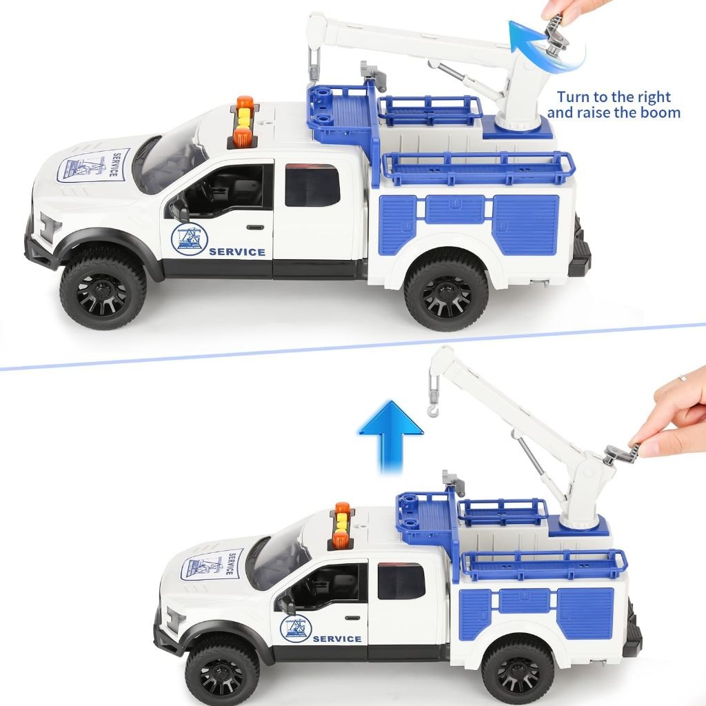 Đồ chơi xe cần cẩu 9011E sử dụng cơ chế chạy đà không cần pin, an toàn cho bé nhỏ. Mô hình có tay cẩu linh hoạt, thiết kế màu sắc bắt mắt, thu hút