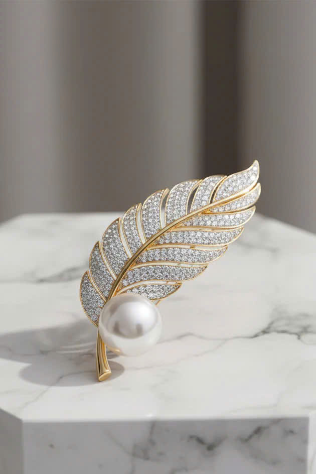Trọng lượng: 10.0g Chiếc trâm cài áo từ lâu đã vượt qua giới hạn của một món trang sức đơn thuần, trở thành tuyên ngôn cá nhân và là biểu tượng của đẳng cấp. Trâm cài áo lông vũ mạ vàng, đính ngọc trai và kim cương này chính là một tuyệt tác như thế. Với thiết kế lấy cảm hứng từ hình ảnh lông vũ mềm mại, mỗi đường nét đều được chế tác tinh xảo, tái hiện sống động vẻ uyển chuyển của chiếc lông vũ đang bay lượn. Toàn bộ bề mặt được nạm hàng trăm viên cubic zirconia lấp lánh, tạo nên độ bắt sáng hoàn hảo, thu hút mọi ánh nhìn. Điểm nhấn không thể bỏ qua chính là viên ngọc trai baruqoe được đính kết khéo léo, mang đến sự hài hòa giữa vẻ đẹp kiêu sa của kim cương và nét dịu dàng, tinh khiết của ngọc trai. Sự kết hợp giữa màu vàng ấm áp của kim loại, ánh sáng trắng của kim cương và vẻ bóng mượt của ngọc trai tạo nên một tổng thể xa hoa nhưng không phô trương. Chiếc trâm cài này không chỉ là phụ kiện cho áo blazer, áo dạ hội mà còn có thể được sử dụng sáng tạo như kẹp tóc cài đầu hay điểm xuyết trên túi xách da, khẳng định gu thẩm mỹ tinh tế và sự sang trọng vượt thời gian của người sở hữu. Hướng dẫn sử dụng