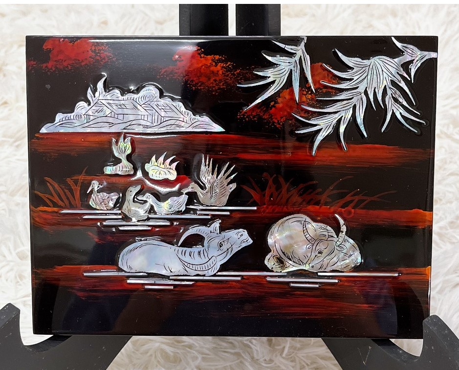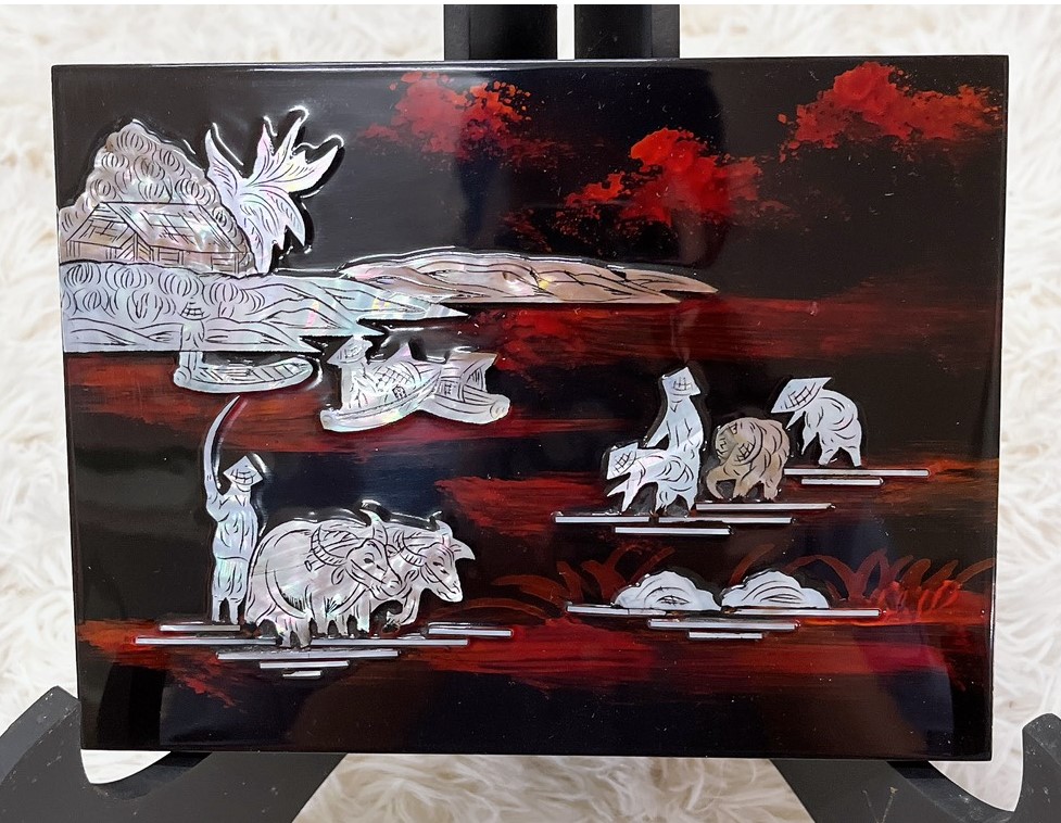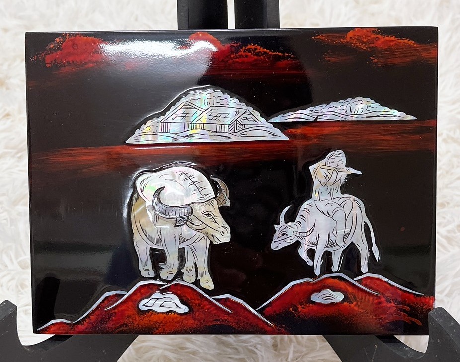Chất liệu: Gỗ MDF Chuyên dụng trong sơn mài Hướng dẫn bảo quản: Tránh ánh nắng trực tiếp và nhiệt độ cực nóng. Giữ đồ Sơn Mài của bạn trong môi trường cân bằng (trung