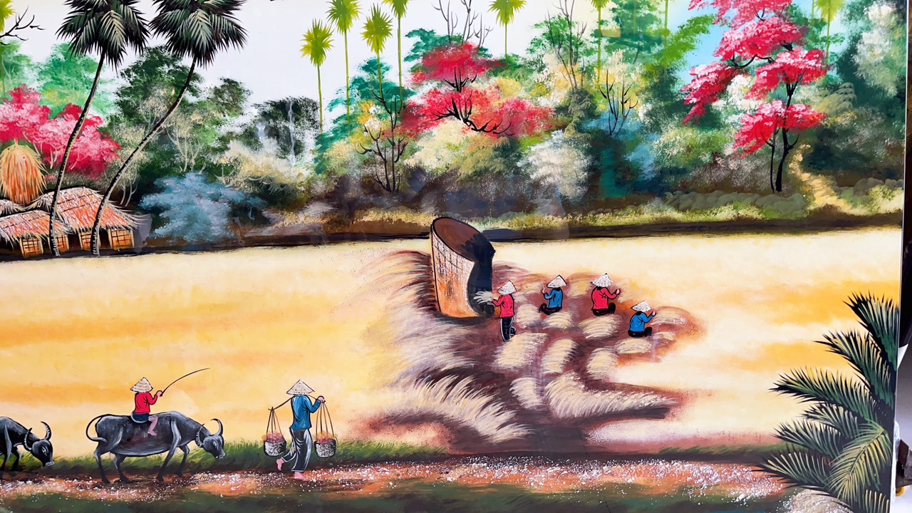 Tất cả tranh sơn mài được sử dụng màu vẽ, sơn PU với chất lượng tốt giúp tranh luôn giữ được màu vẽ, độ bóng bền vững theo thời gian. Đồng quê Việt Nam luôn là nguồn cảm hứng bất tận của những người nghệ sĩ yêu quê hương. Những cánh đồng lúa bạt ngàn, những con người lao động chân chất nhưng cần cù chịu thương chịu khó là những nét đẹp của đất nước trong mắt nhân dân và bạn bè quốc tế.