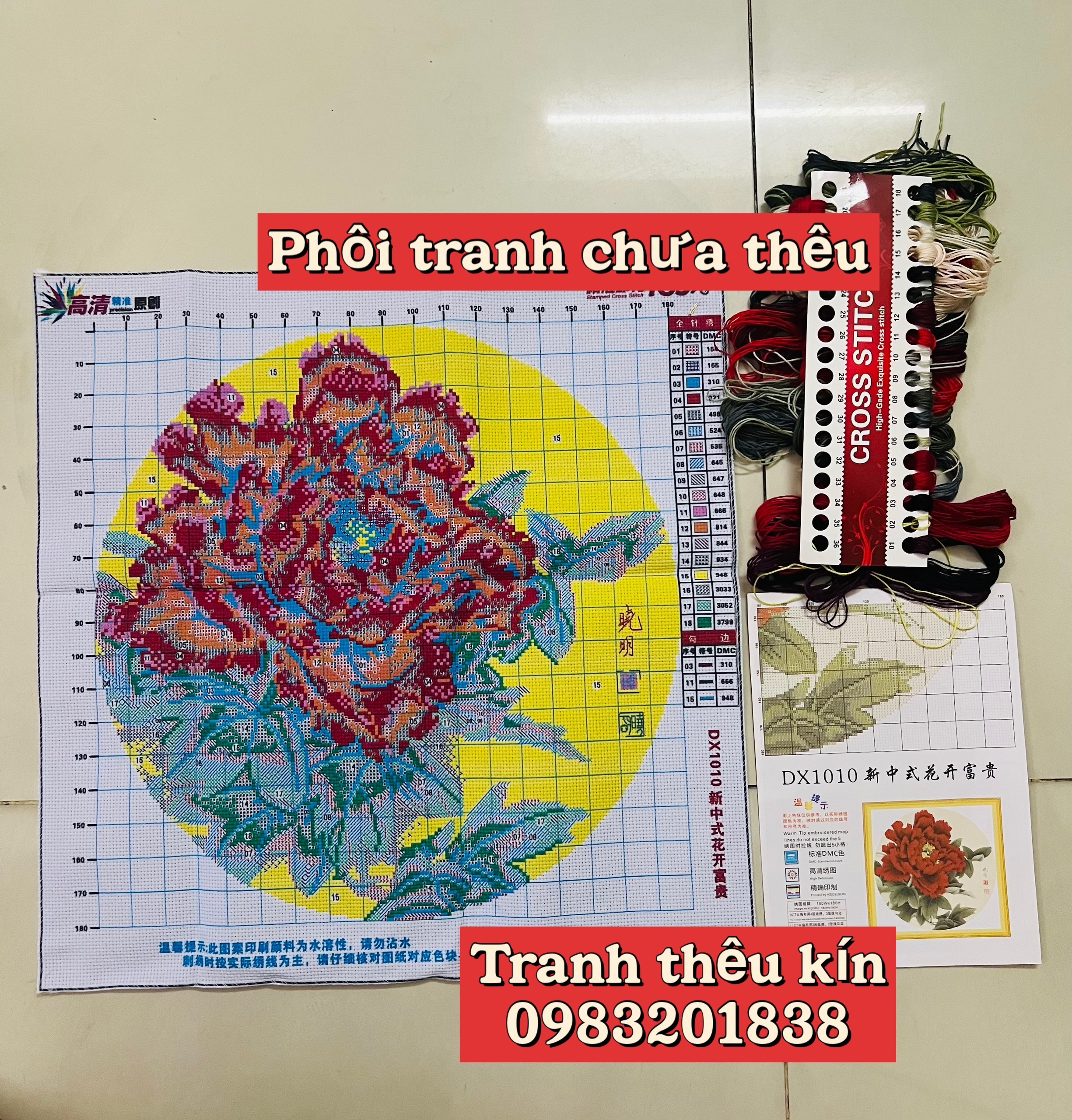 tranh thêu kín hoa mẫu đơn chưa thêu mua về tự thêu nha. lh 0965513916zalo