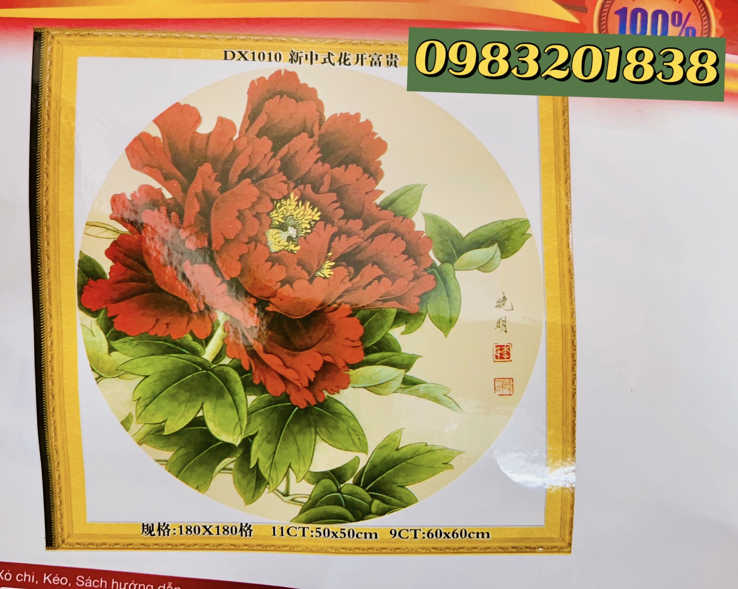 ✨Tranh thêu kín chữ thập Hoa mẫu đơn DX1010, kích thước 50 x 50 cm