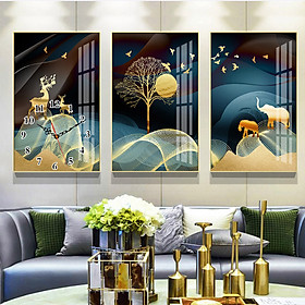 Tranh đồng hồ hươu vàng tài lộc - Kích thước của tranh : 35x70cm - 45x90cm -55x110cm-60x120cm - Khác h hàng muốn thay đổi sản phẩm tùy ý như: kích thước, màu sắc kim đồng