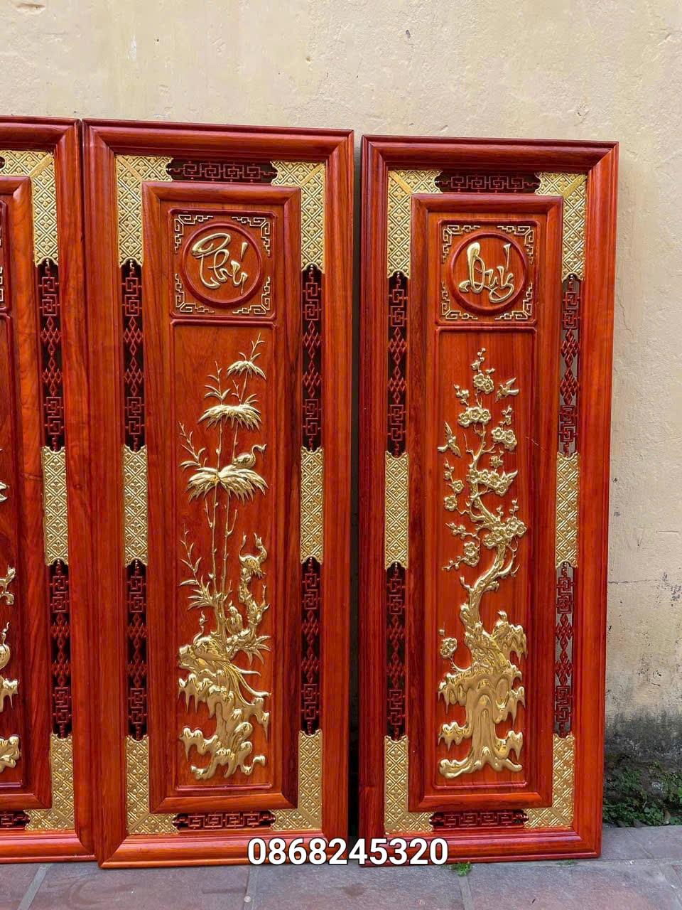 Bộ tranh tứ quý gỗ hương đá đẹp 117*37*4 phân | hoàn thiện Sơn pu dát vàng giá 8,5 triệu/ bộ