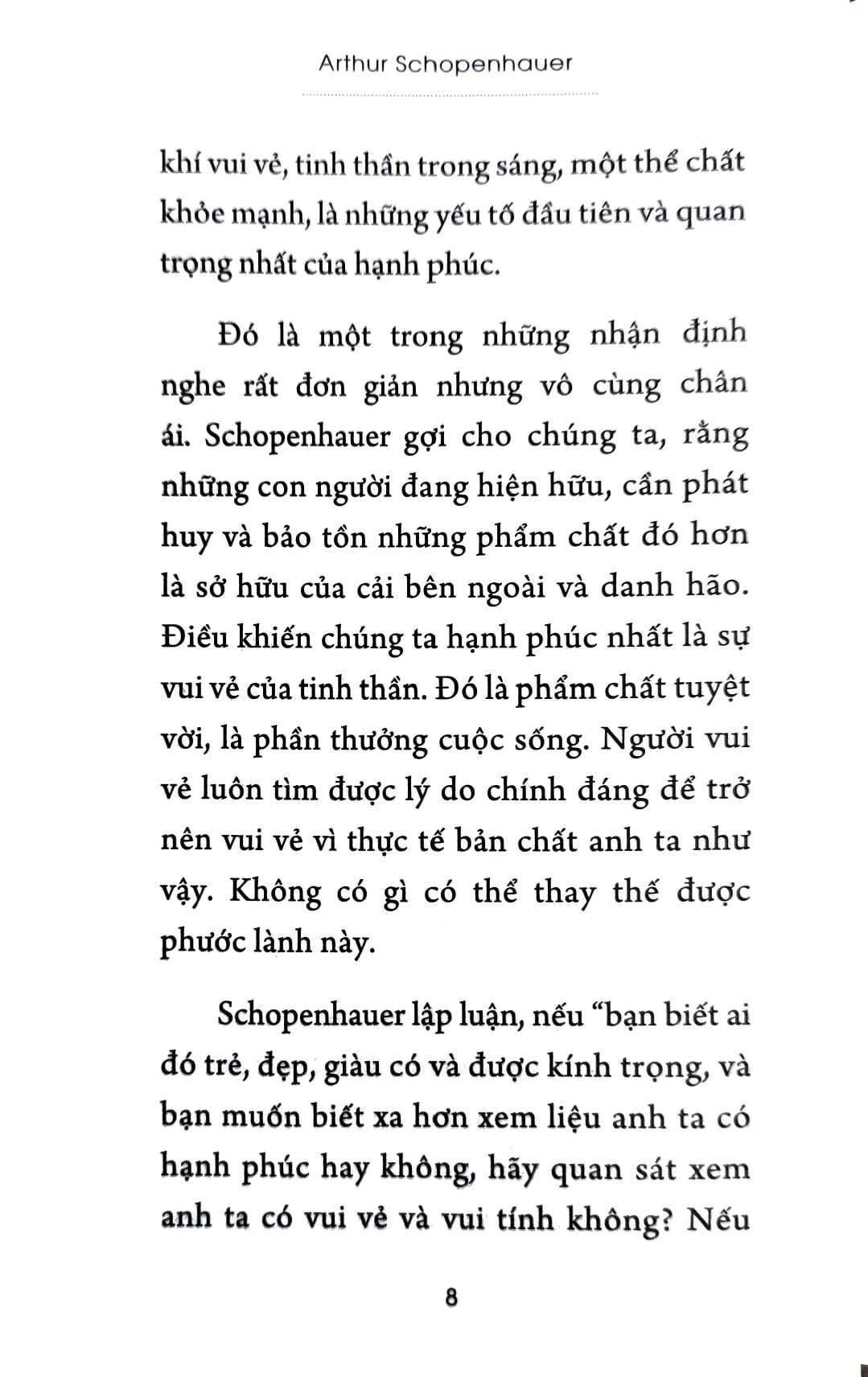 Mua tại TiktokTrí Tuệ Nhân Sinh GIỚI THIỆU TÁC GIẢ: Arthur Schopenhauer, một trong những triết gia vĩ đại của nước Đức, nổi tiếng với những quan điểm đầy sáng tạo và phản biện sâu sắc về cuộc sống và nhân sinh. Ông được biết đến với việc khuyến khích một lối sống đơn giản, khổ hạnh và chay tịnh, mặc dù trong cuộc sống cá nhân ông lại thích ăn thịt, uống rượu vang và mê mẩn phụ nữ. Schopenhauer đã mở rộng và phát triển triết lý Kant về cách con người trải nghiệm thế giới, đặc biệt là trong việc khám phá sâu sắc về bản chất của khổ đau và sự vô ích trong cuộc sống. Triết gia này không chỉ nổi tiếng với sự độc lập tư tưởng mà còn với sự dám nghĩ, dám nói và sự sâu sắc về tâm lý con người, tạo nên dấu ấn sâu sắc trong lịch sử triết học thế giới. GIỚI THIỆU TÁC PHẨM: TRÍ TUỆ NHÂN SINH – CUỘC DẠO CHƠI CỦA MỘT “ĐỘC CÔ” GIỮA CUỘC ĐỜI. Trí Tuệ Nhân Sinh của Arthur Schopenhauer là một tác phẩm triết học sâu sắc về hạnh phúc và ý nghĩa cuộc sống. Trong cuốn sách này, Schopenhauer đề cập nhiều điều thú vị mà bạn đọc có thể chiêm nghiệm và tự rút ra cho mình những bài học quý giá. Ông cho rằng, những gì một người có ở bản thân mình, cùng với mục tiêu cuộc sống của anh ta, là yếu tố trực tiếp dẫn đến hạnh phúc và phúc lợi của người đó. Tất cả những thứ khác chỉ là trung gian và gián tiếp và ít bị ảnh hưởng. Schopenhauer lập luận, con người có thể dễ dàng chịu đựng một điều bất hạnh đến từ bên ngoài dễ dàng hơn là điều bất hạnh từ bên trong. Vận mệnh có thể thay đổi, nhưng tính cách thì không. Vì vậy, những phước lành từ chủ quan, một bản chất cao thượng, một cái đầu có năng lực, một tính khí vui vẻ, tinh thần trong sáng, một thể chất khỏe mạnh, là những yếu tố đầu tiên và quan trọng nhất của hạnh phúc. “Đừng nên kỳ vọng nhiều vào người khác, hay nói chung là đừng nên kỳ vọng từ thế giới bên ngoài” – như một châm ngôn đúng với bất kỳ ai! Chính bản thân mình là nguồn gốc của những điều tốt đẹp nhất mà con người có thể đạt được. Càng đúng hơn khi khẳng định – một người càng vui vẻ hạnh phúc hơn khi tìm thấy nguồn vui trong chính mình.