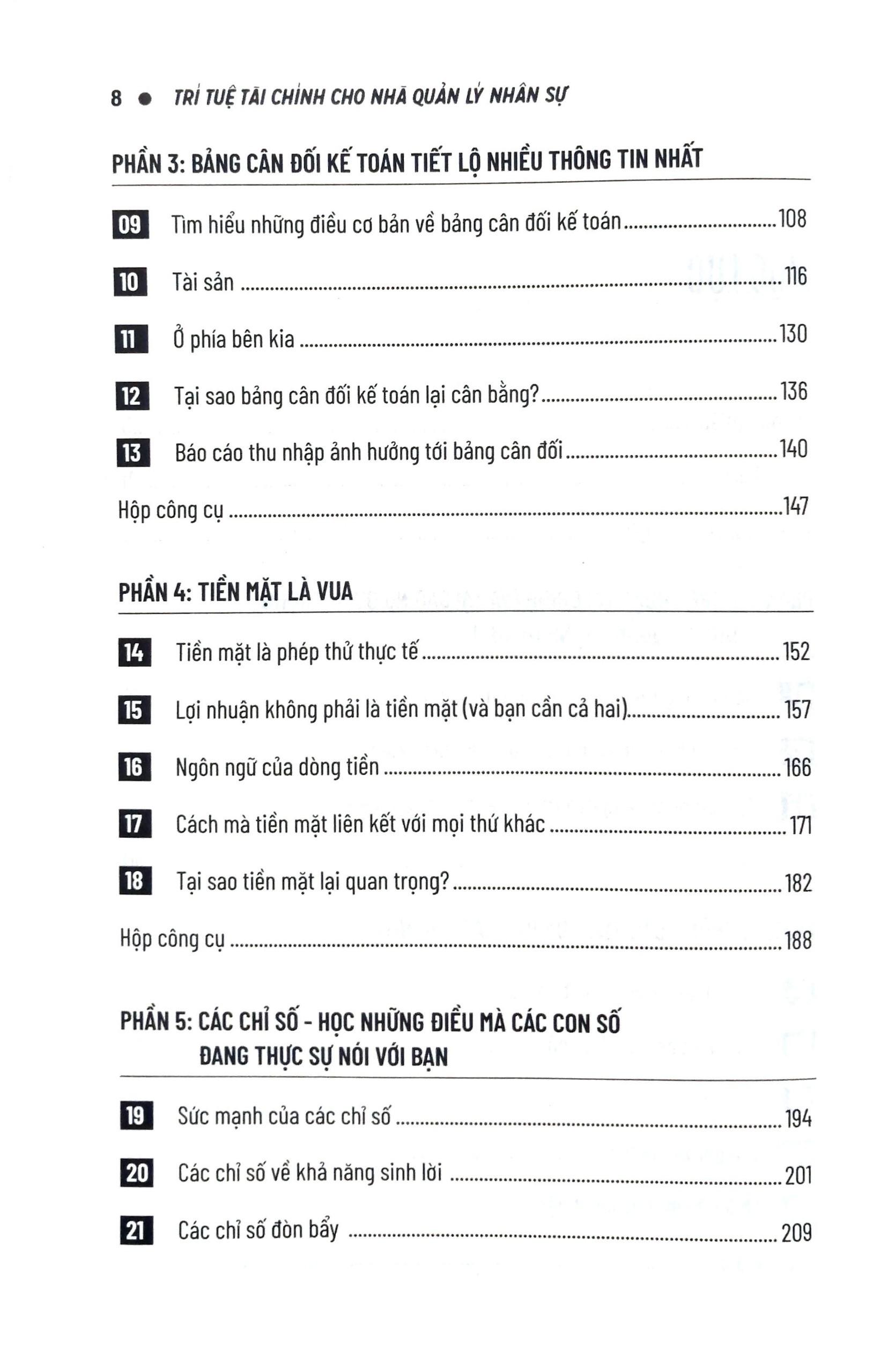 Là một nhà quản lý nhân sự, bạn phải sử dụng dữ liệu tài chính để đưa ra quyết định, phân bổ nguồn lực và lập ngân sách chi phí. Nhưng nếu giống như nhiều người làm ở vị trí này, bạn có thể cảm thấy không chắc chắn khi kết hợp tính toán tài chính vào công việc hằng ngày của mình. Và đây là lúc bạn cần đến Trí tuệ tài chính dành cho nhà quản lý nhân sự. Ba tác giả đã trình bày tất tần tật những hiểu biết cần thiết về tài chính dành riêng cho các chuyên gia nhân sự trong cuốn sách này.