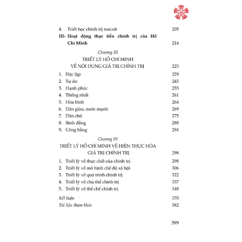 của cuốn sách đi từ xây dựng khung lý thuyết phục vụ nghiên cứu triết lý chính trị Hồ Chí Minh đến việc nghiên cứu bối cảnh và tiền đề ra đời, xác định và phân tích những nội dung cơ bản cũng như khái quát đặc điểm và giá trị của triết lý chính trị Hồ Chí Minh.