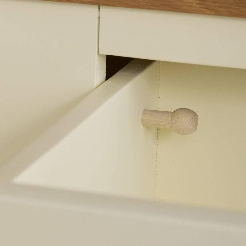Tủ chén thấp Country Cottage loại nhỏ được thiết kế theo phong cách cổ điển Pháp, màu sắc nhã nhặn và hiện đại. Sản phẩm là sự kết hợp hoàn thiện giữa chức năng và phong cách. Hai ngăn kéo rộng rãi và một ngăn tủ đôi lớn, đáp ứng nhu cầu lưu trữ linh hoạt cho phòng ăn hoặc nhà bếp, phòng khách... Được chế tác bởi các thợ mộc có tay nghề cao, từ gỗ sồi trắng Mỹ cao cấp, ngăn kéo được làm thủ công, kết cấu ghép mộng truyền thống chắc chắn. Bên trong ngăn tủ có một kệ gỗ cứng có thể điều chỉnh chiều cao, hỗ trỡ tối đa hóa không gian lưu trữ. Tủ được thiết kế độc lập, vẻ ngoài được sơn phủ màu kèm đẹp mắt trên nền chất liệu gỗ sồi trắng Mỹ chất lượng cao. Để tận mắt chiêm ngưỡng và sở hữu vẻ đẹp xuất sắc này, hãy tham khảo thêm tại bộ sưu tập Country Cottage của chúng tôi.