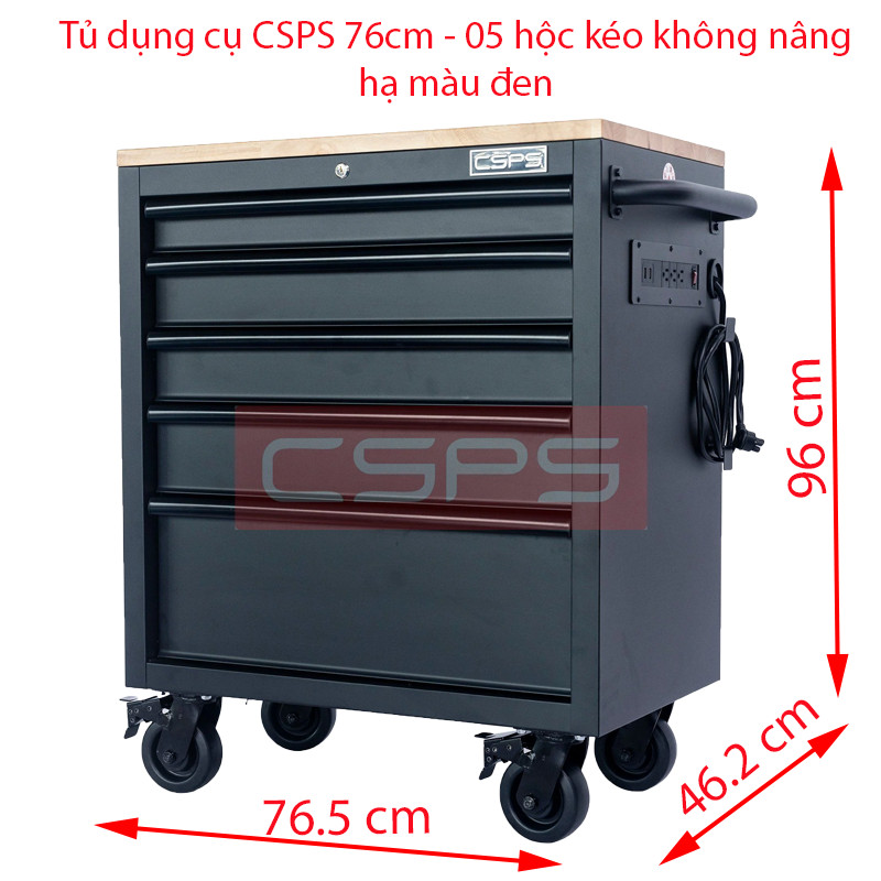 Tủ dụng cụ CSPS 7 ngăn kéo, mặt ván gỗ và vách lưới chất lượng cao. THÔNG SỐ KỸ THUẬT 1 THÔNG SỐ CHUNG Kích thước sản phẩm: 76.4 cm Ngang x 46.2cm Sâu x 96